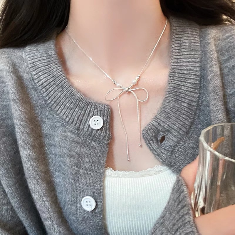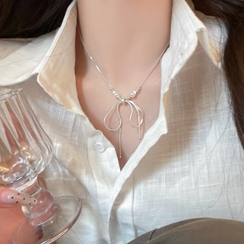 超美しいプルボウタッセルネックレスアクセサリー女性のライト高級ニッチ気質鎖骨チェーンシンプルなスネークボーンチェーンネックレス