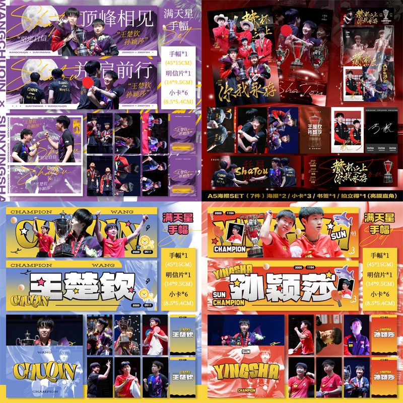孫穎莎/王楚欽/莎の頭の署名は1セットの5枚の応援の小さいカードの同項の応援の周辺を撮影します。