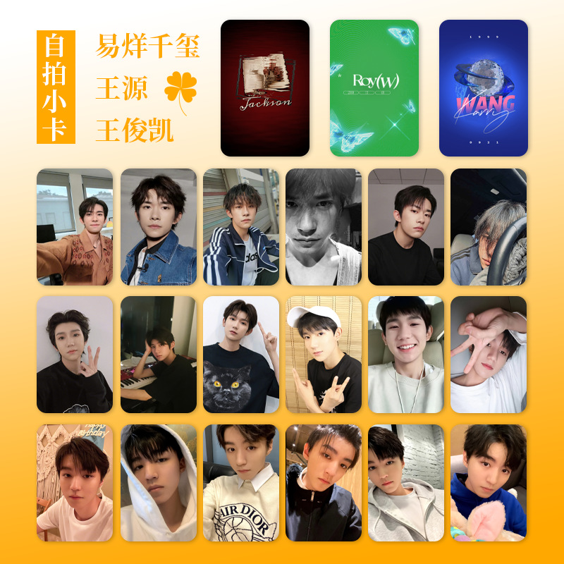 ユーカリ林一成毅范丞丞は大三寸スターの周辺応援物のサインカードを撮影しました。