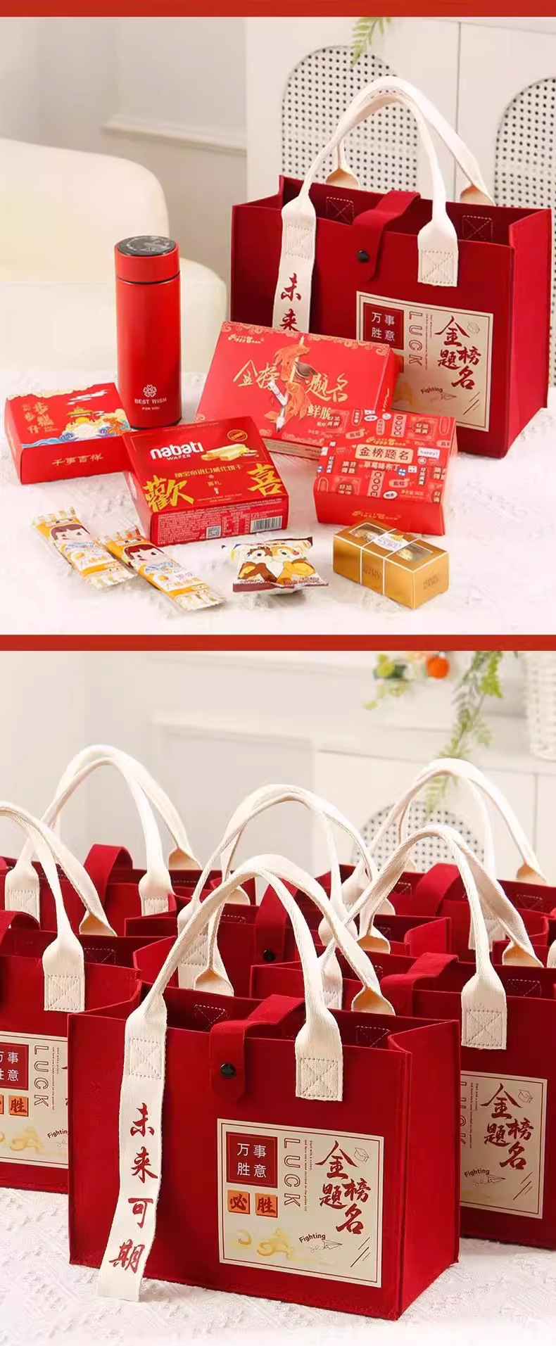大学入試ゴールデンリストフェルトバッグ、高級百日宴会ギフトバッグ、ショッピングバッグ、先生感謝宴会ハンドバッグ卸売