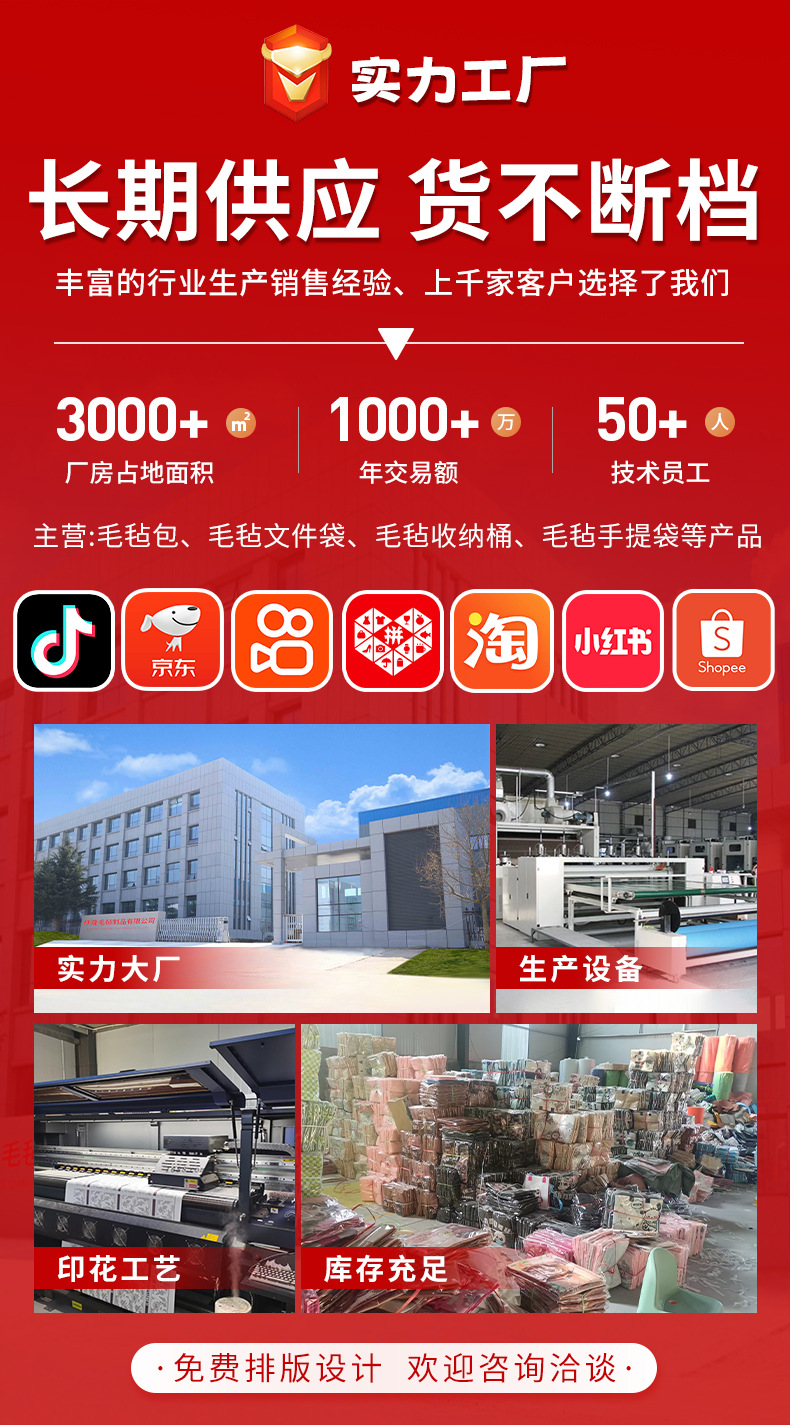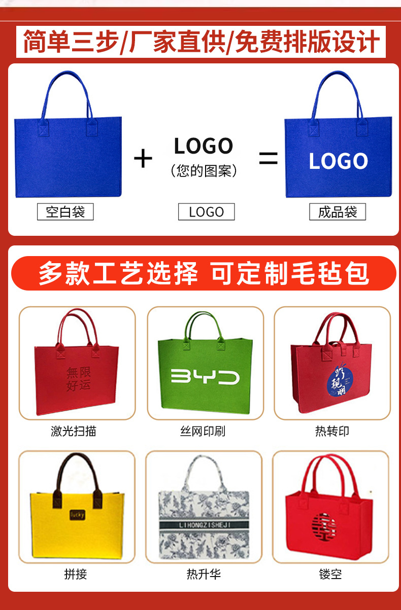 毛毡手提包新款大容量托特包中秋过节伴手拎包高颜值旅行包批发