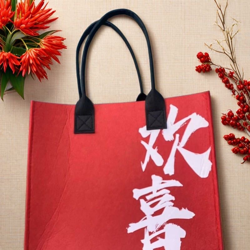 中国のトレンディな中国の赤いフェルトバッグフェルトハンドバッグギフトバッグトートバッグ大容量中秋節ギフトバッグ