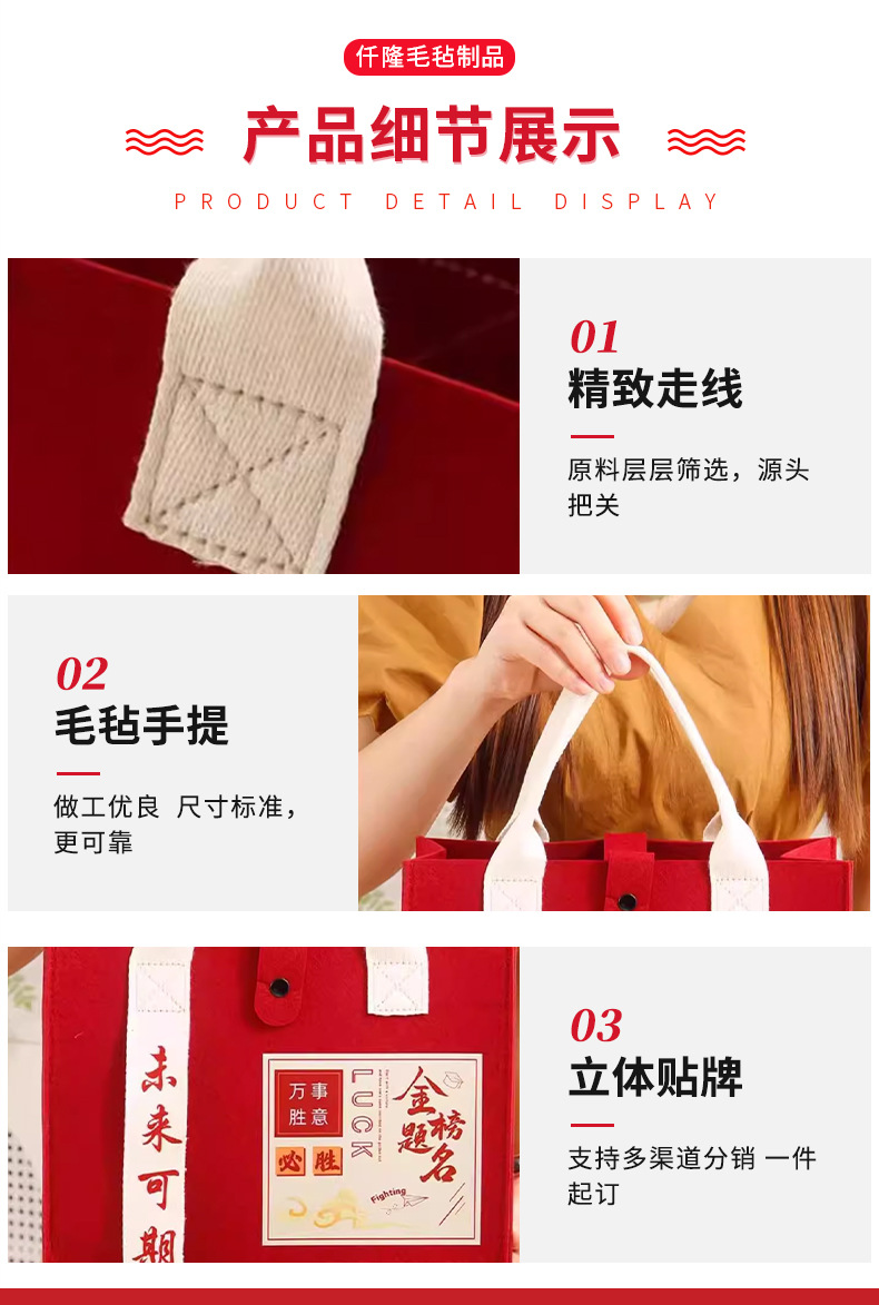 フェルトハンドバッグ卸売大学入学試験ゴールデンリスト名前入学宴会ハイエンドギフトバッグハンドバッグメーカー