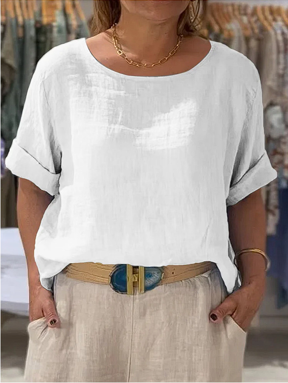 2025 夏ヨーロッパとアメリカのクロスボーダー新しい女性の無地ファッション前後双方向綿とリネンのボタンシャツ