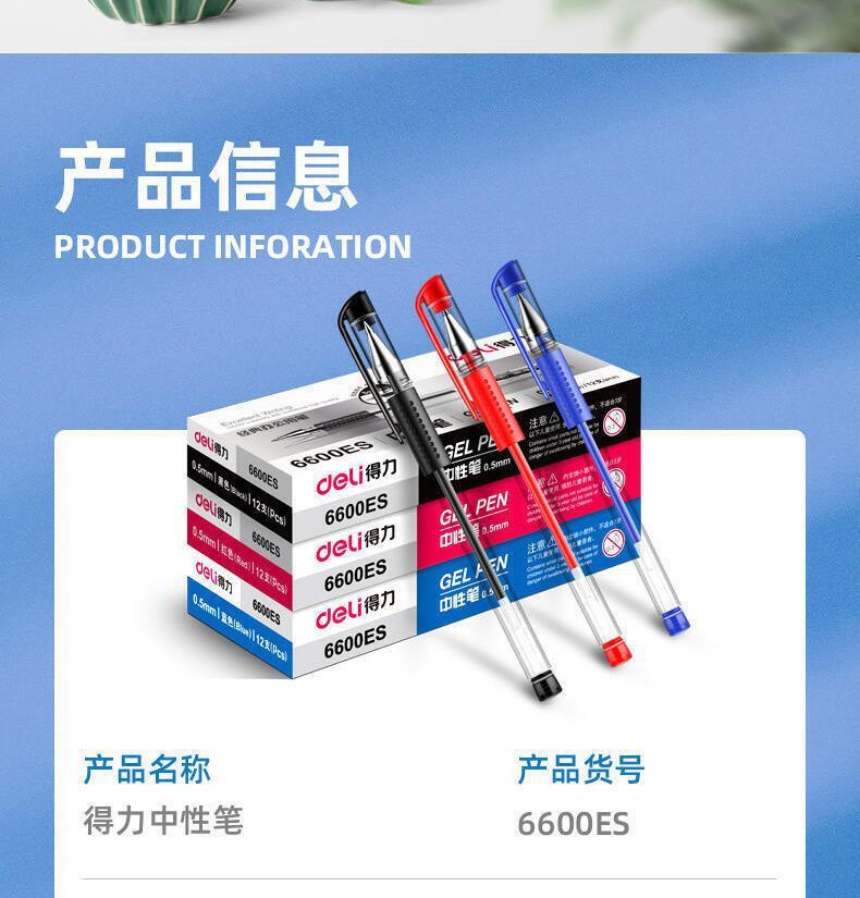 デリ 6600ES ゲルペンキャップ取り外し学生オフィスデイリーライティングペンカーボンペン弾丸ペン試験ペン