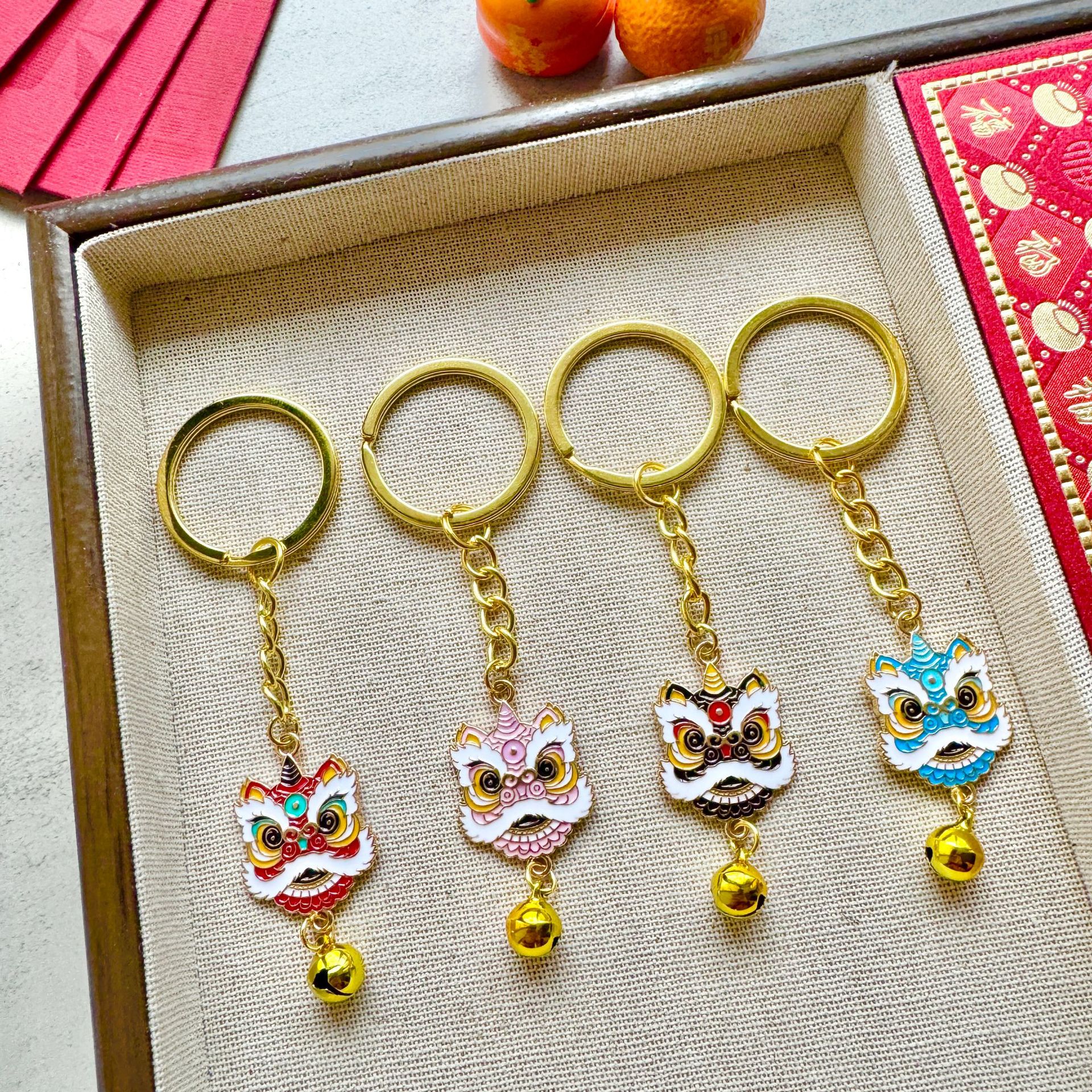 国潮醒狮钥匙扣新年创意珐琅彩狮子头挂件节日礼品汽车钥匙链挂饰