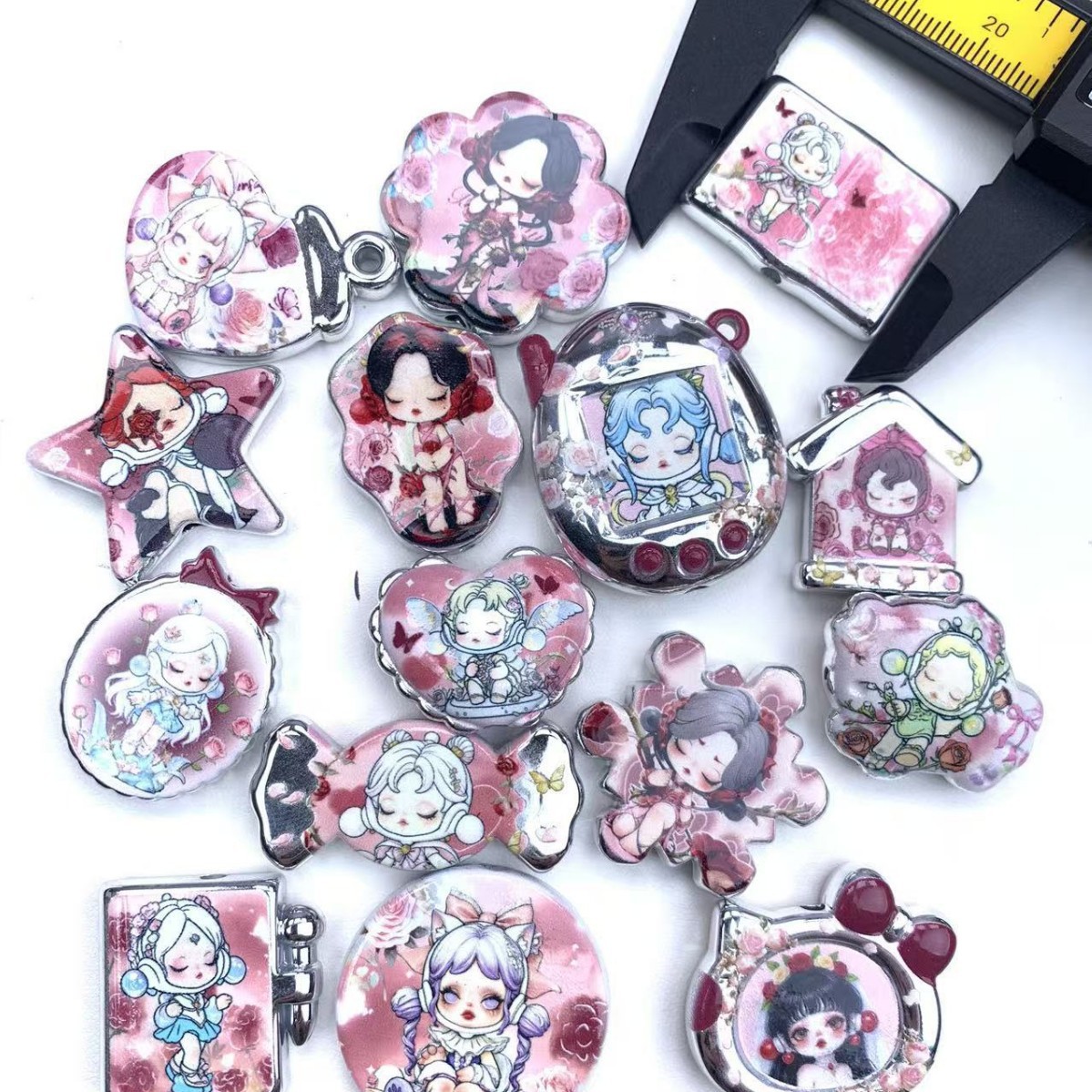玫瑰SP通孔双面银色底坯打印印花珠珠配件主题系列手机链