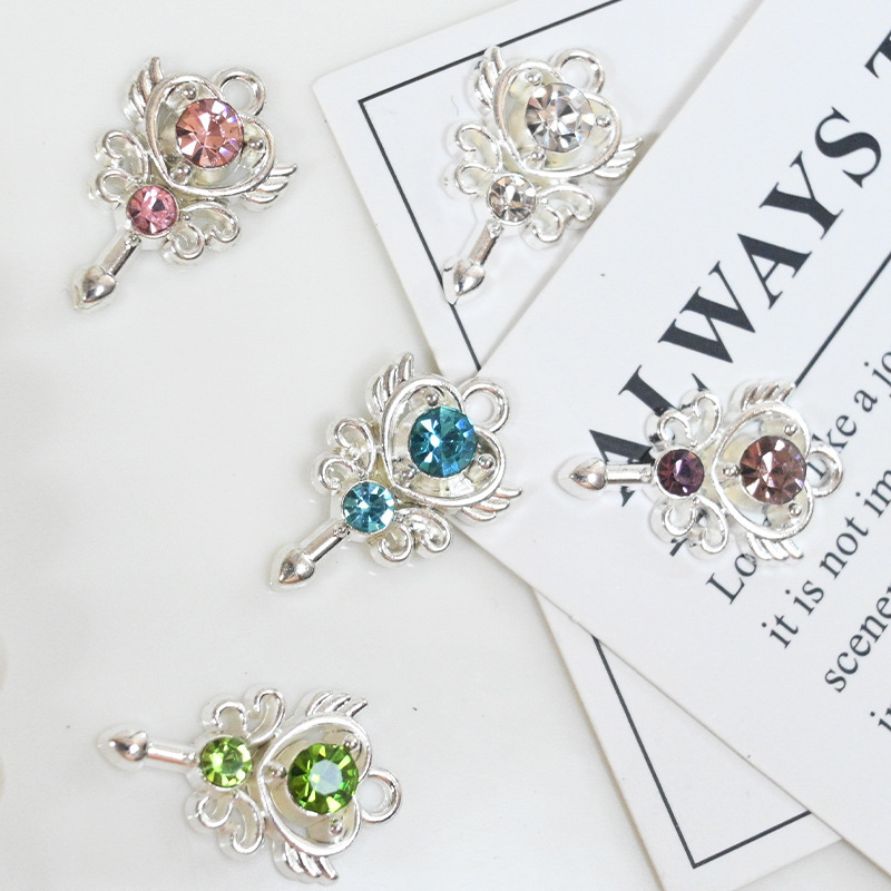甜美时尚银色魔法棒镶钻桃心权杖合金挂件diy项链手链耳饰品配件