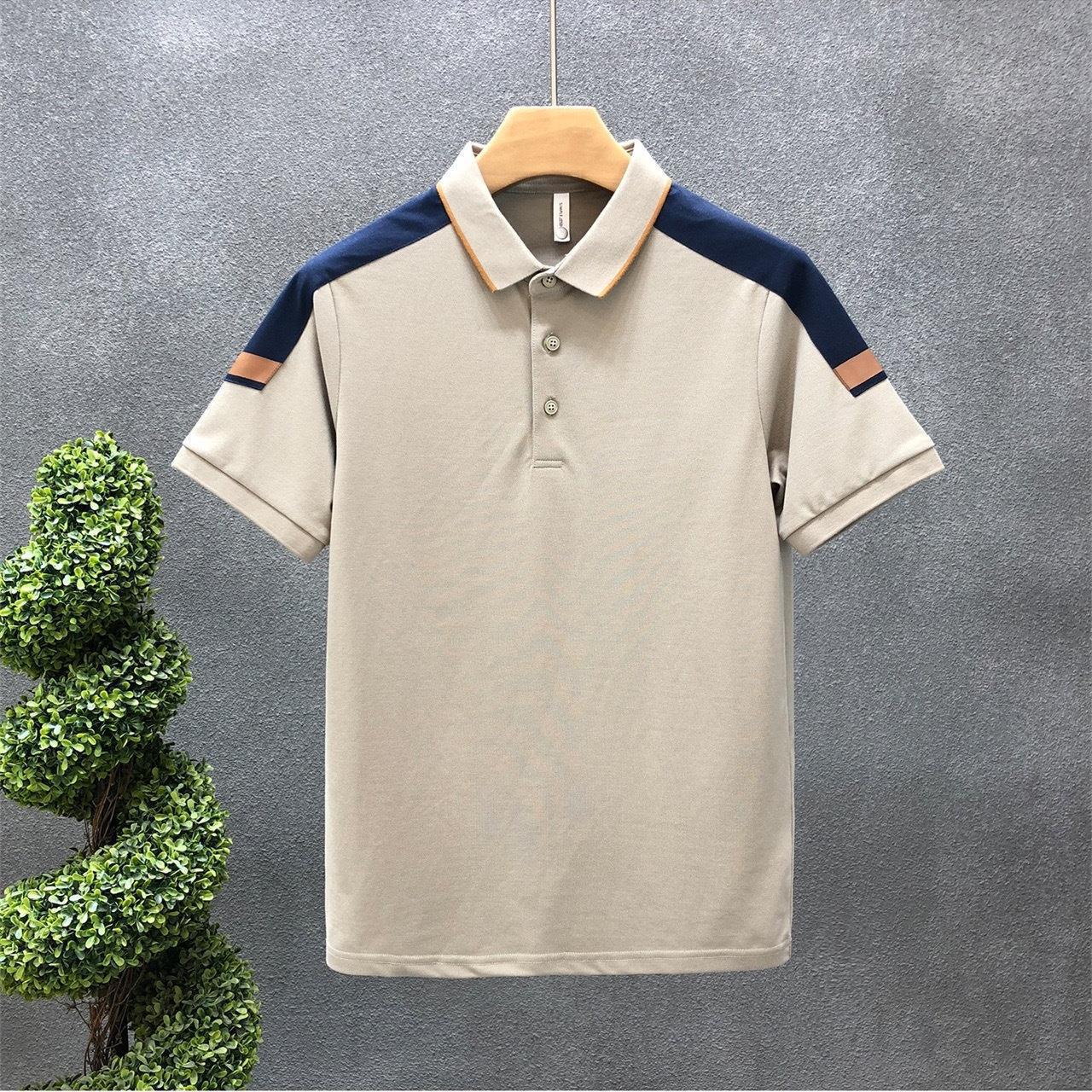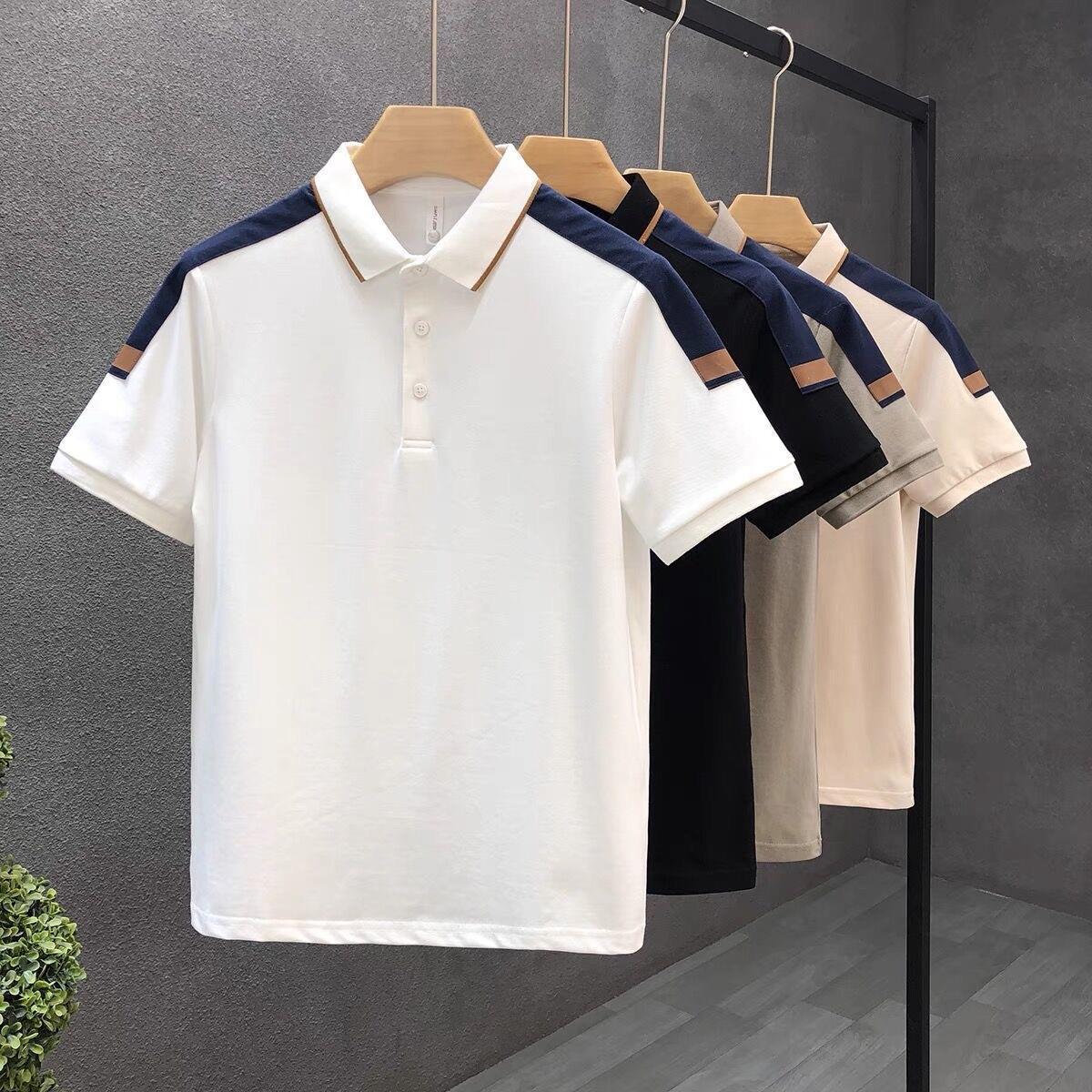トレンドブランド スモールオフショルダー コントラストカラーラペル ポロシャツ メンズ トレンドブランド 新作 メンズ 半袖 スリム フォーマル Tシャツ