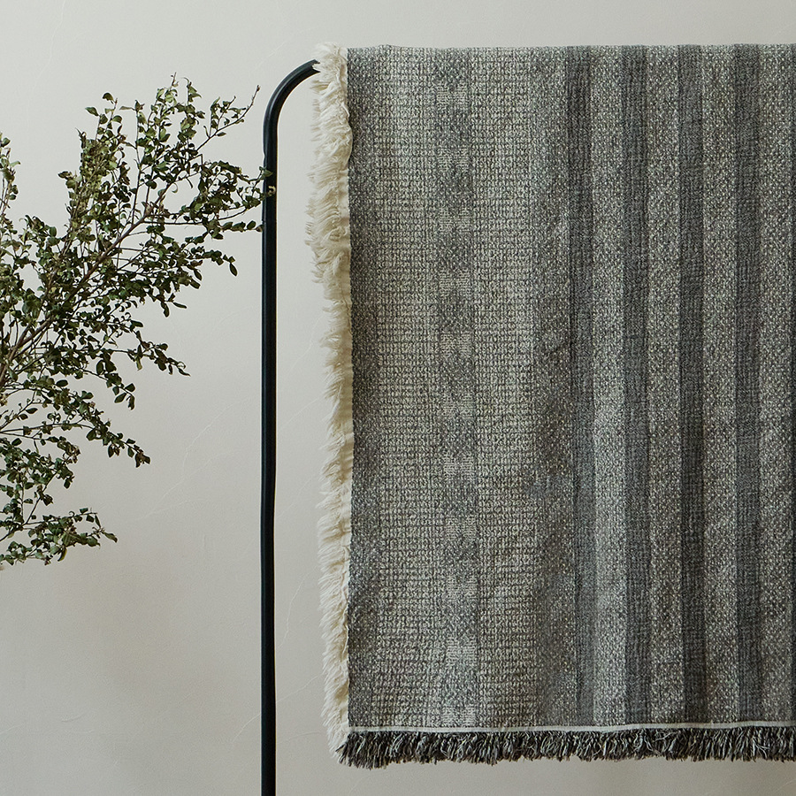 棉麻强缩色织提花毯