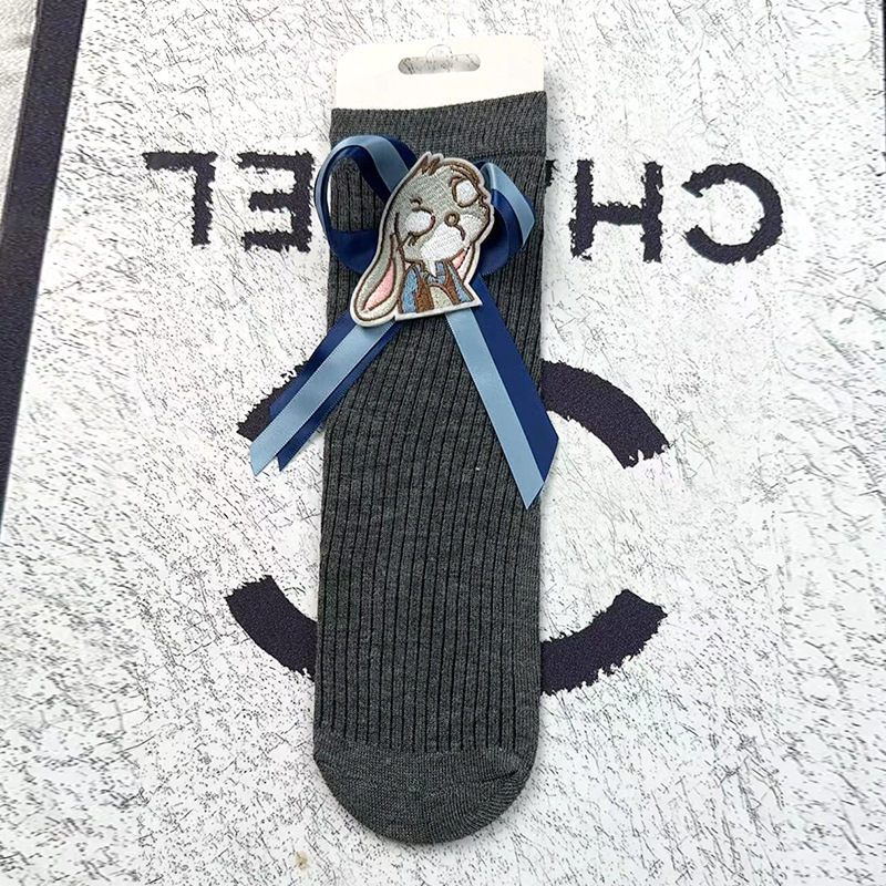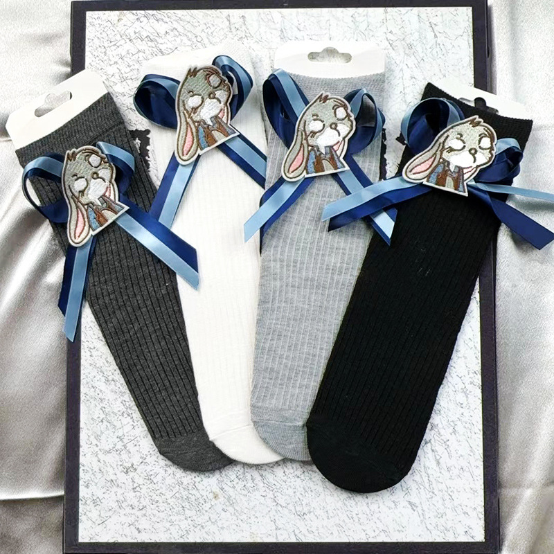 ジュディウサギ警官 COS 漫画刺繍黒ミッドカーフソックス女の子春夏秋冬四季靴下ロリータソックス