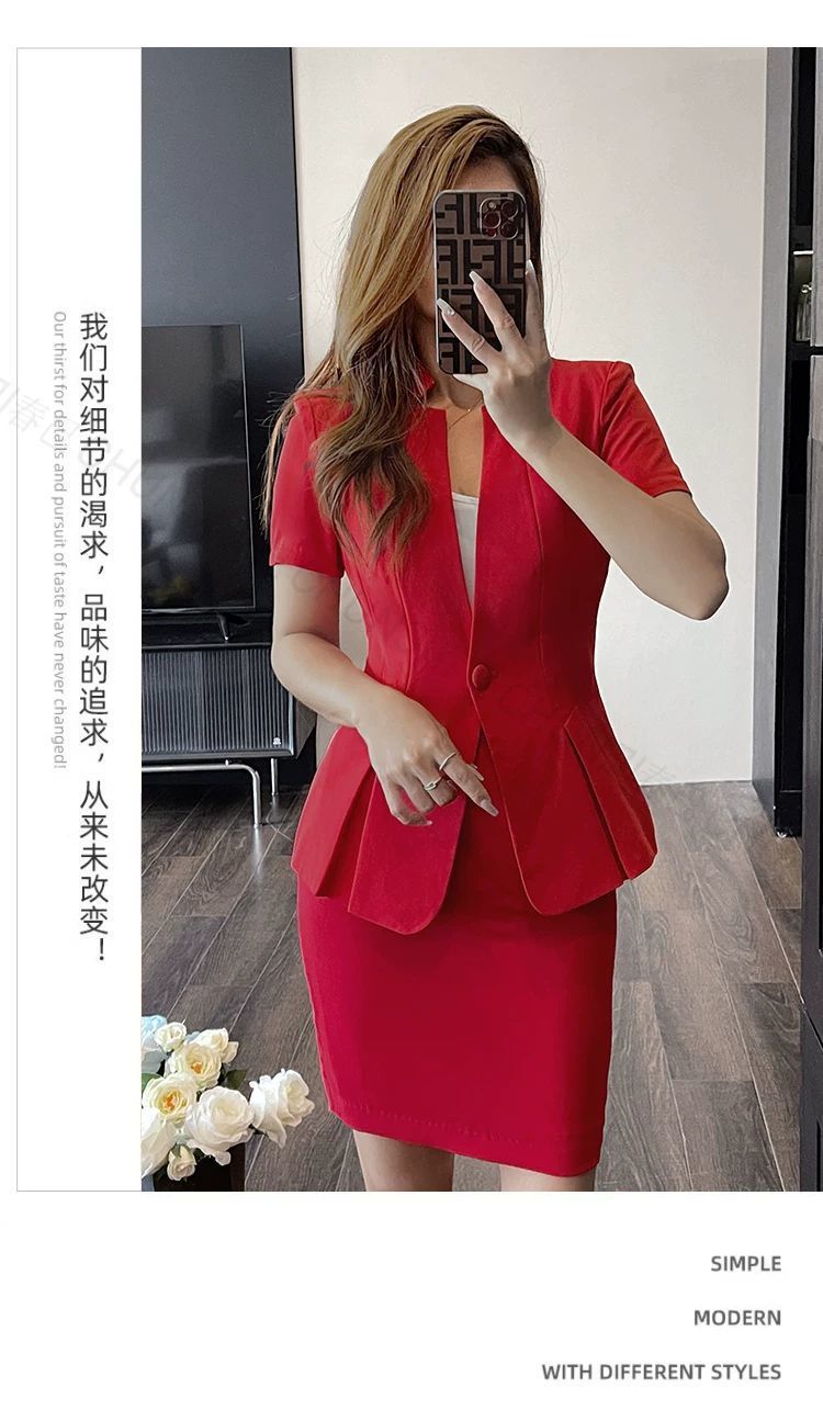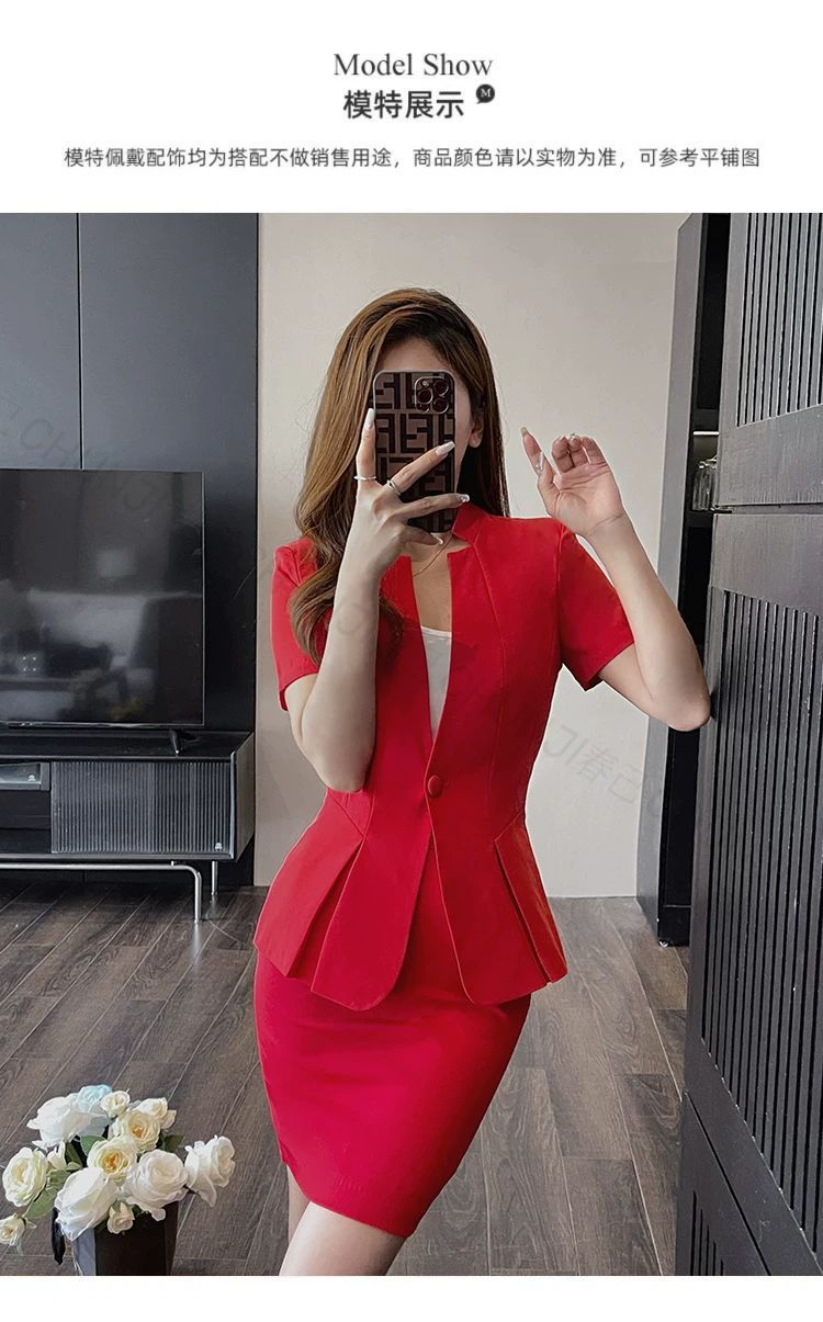 女性用プロフェッショナルスーツ、夏の人気の半袖スタイル、ホテルフロントワークウェア、ビューティーサロンジュエリーショップ作業服