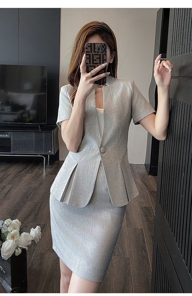 短袖无领西装套装女夏季薄款气质年会主持人正装珠宝店前台工作服