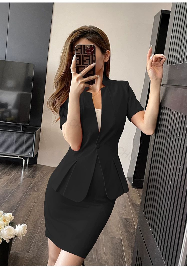 半袖のスーツのコートの女性の夏の気質のスチュワーデスの職業のスーツのスカートのホテルのフロントの工装の美容院の作業服