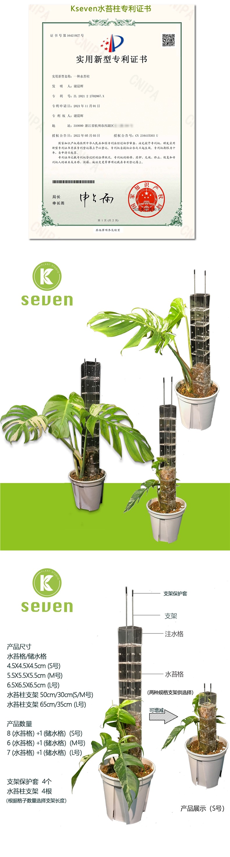 Kseven 透明モジュール式モスコラムは接続可能で切断しやすい植物クライミングコラムモンステラは再利用可能