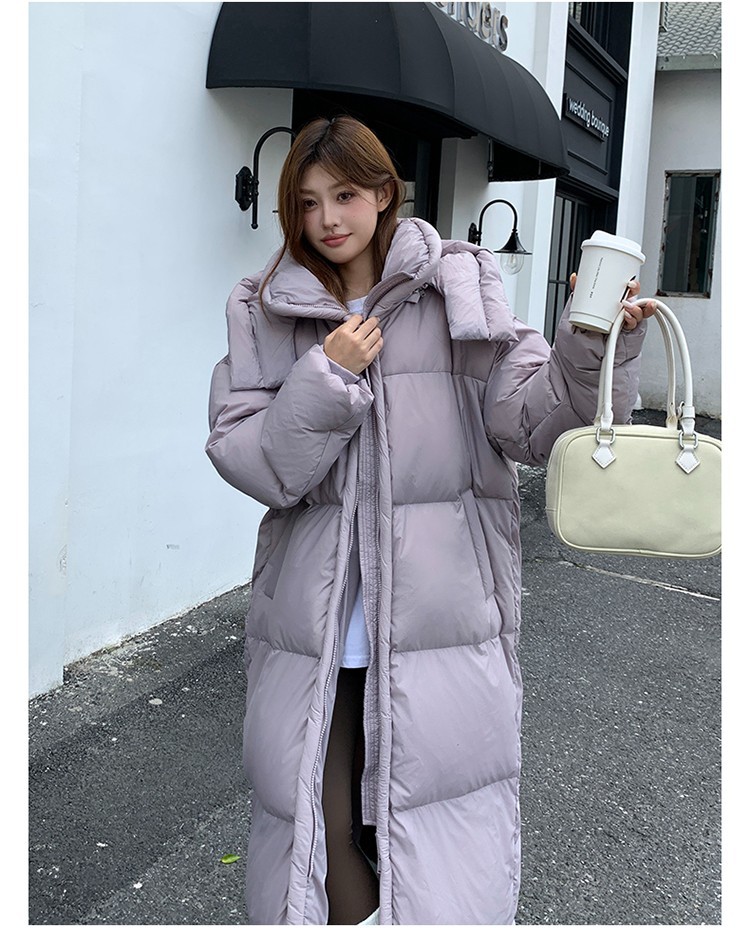 2025年新作ゆったり厚手コットンコート、ロング丈膝丈フード付きコットンジャケット、おしゃれで人気の韓国風インスタイル