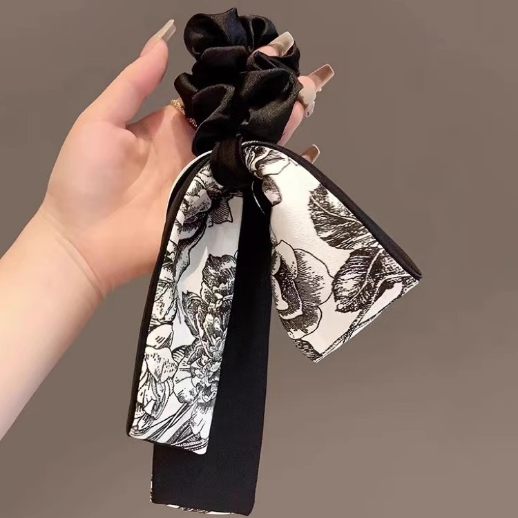 中国風の水墨画クールプリントパターンヘアバンド気質サテンリボンリボンローポニーテールヘアロープヘアアクセサリー