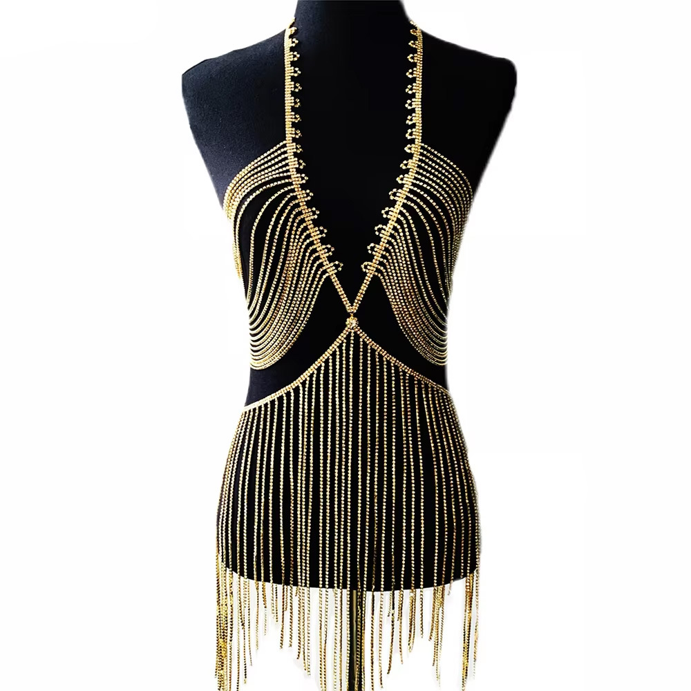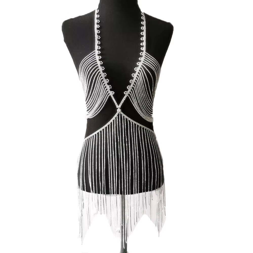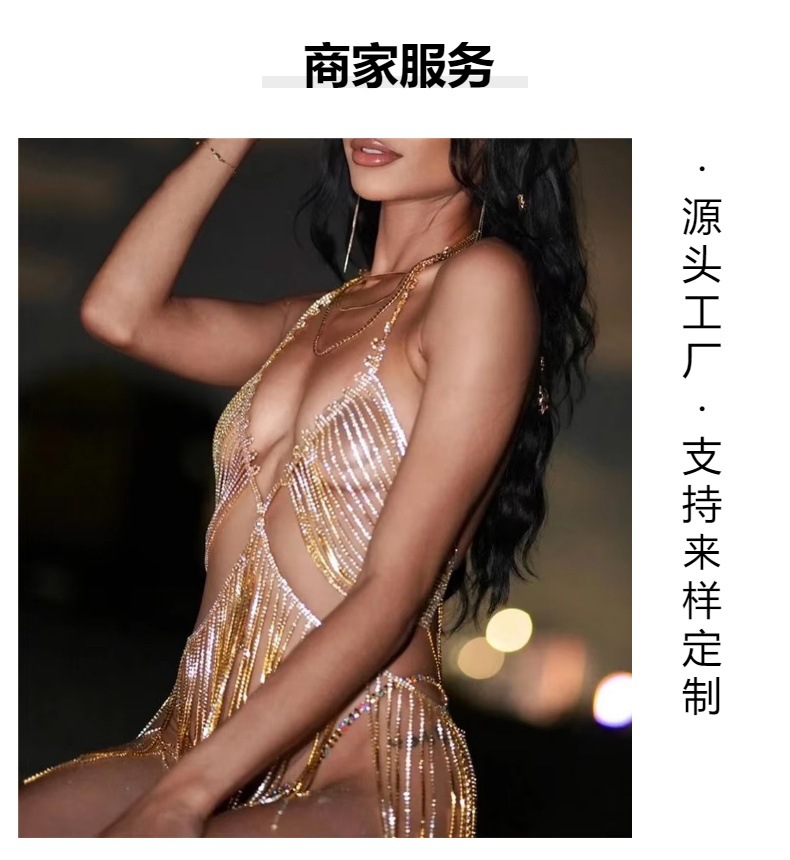 ヨーロッパとアメリカの胸チェーンアクセサリー、ファッショナブルなタッセルチェーン、輝く女性用ラインストーンボディチェーン、義烏の貿易ジュエリー卸売、クリスタル
