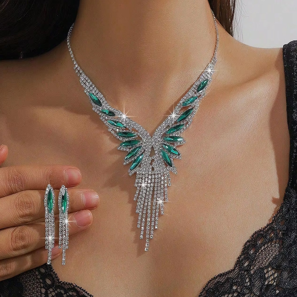 ヨーロッパとアメリカのジュエリーネックレスイヤリングジュエリーセットショートラインストーン新婚宴会ドレスアクセサリー新鮮で甘いジュエリー
