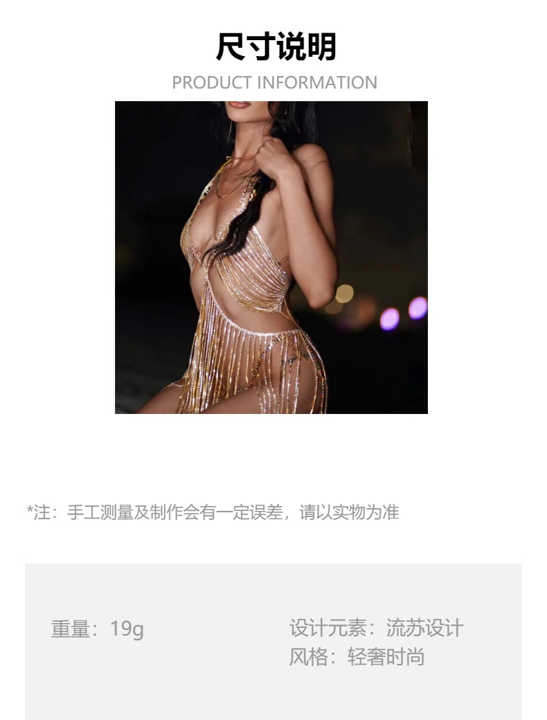 Amazonの人気のスパンコールクロス型ロングタッセルボディチェーンアクセサリーヨーロッパとアメリカのパーティーセクシーなホルターネックドレス