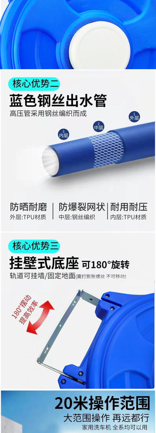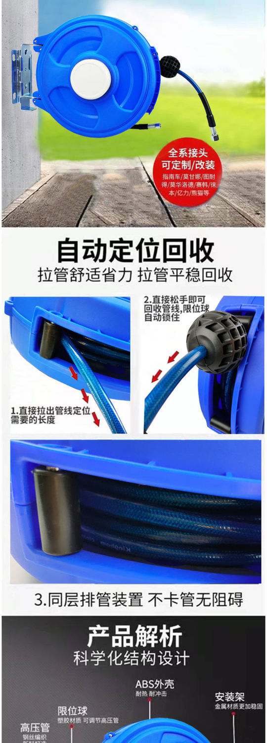 洗車機水ホース自動伸縮収納ホースワインダーラック高圧ウォーターポンプ収納ホースウォータードラム