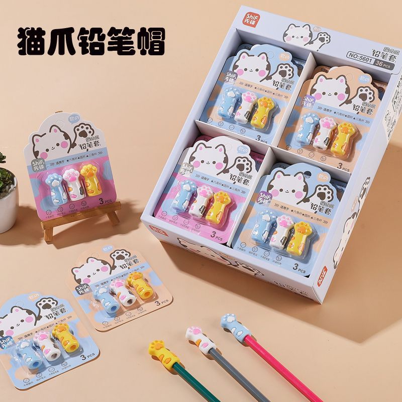 鉛筆キャップ鉛筆保護カバー漫画猫の爪ソフトプラスチックペンカバー三六角穴ペンユニバーサル鉛筆エクステンダー