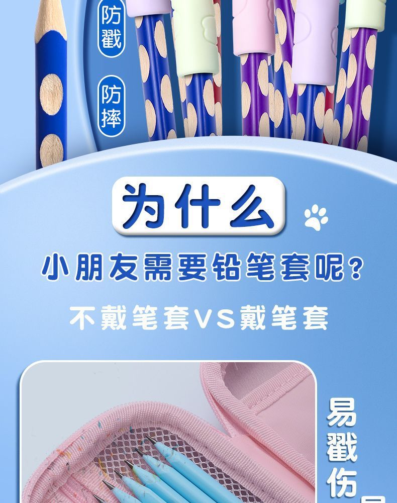 猫爪铅笔帽学生卡通铅笔套头笔尖保护套儿童笔帽铅笔盖盖帽延长器