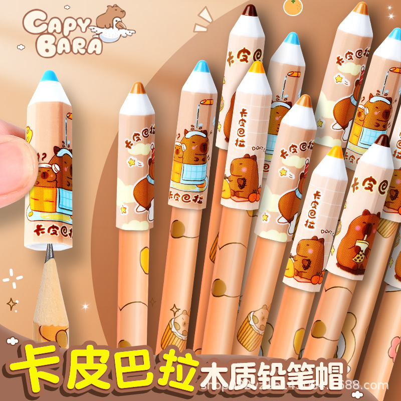 Kapibala 新しい鉛筆キャップ学生特別な木製鉛筆カバー保護カバー子供の漫画ペンキャップ