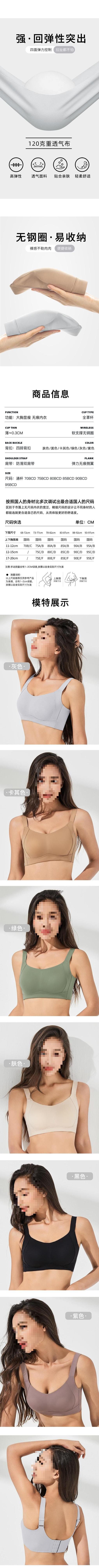 女性用の快適なシームレス下着、薄い、大きいサイズ、大きな胸、スリム、ノンワイヤー、垂れ防止、調節可能なブラジャー