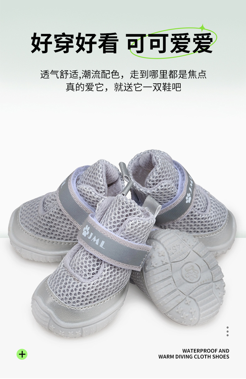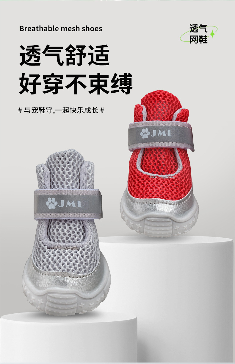 新しいペット用犬靴、通気性のあるメッシュ素材で足が蒸れにくい、滑り止めソール、大型犬、中型犬、小型犬に共通、耐摩耗性ペットシューズ