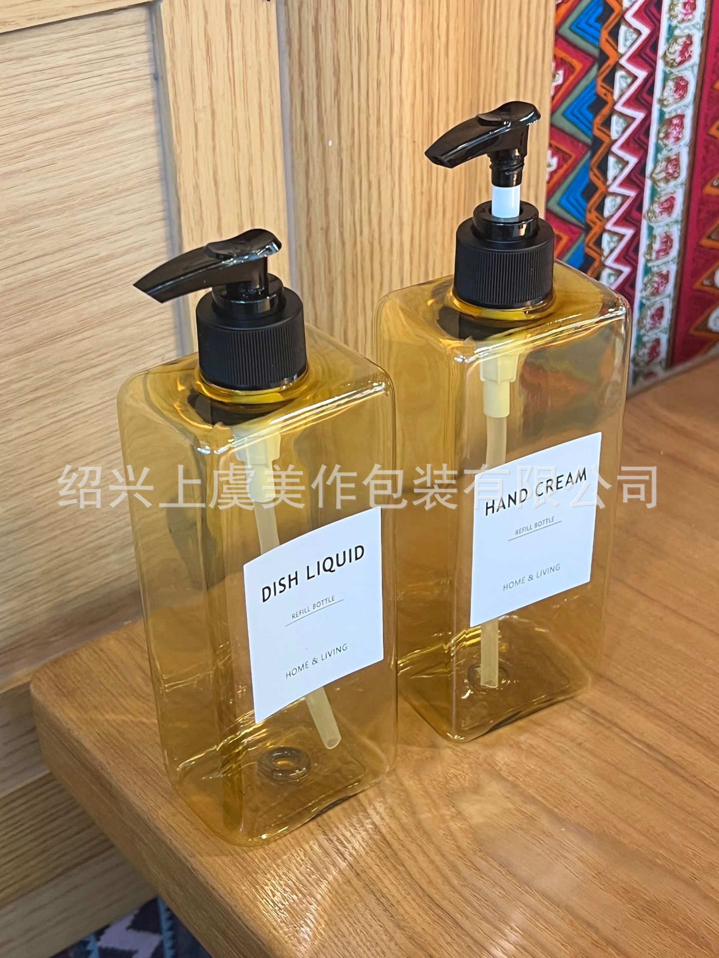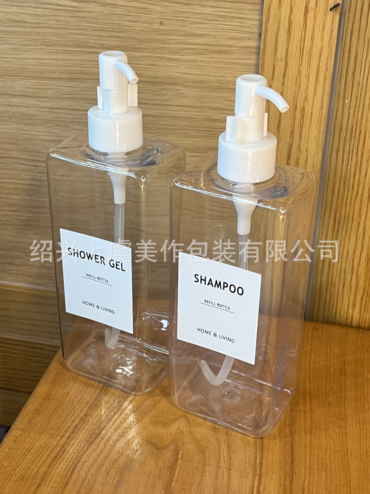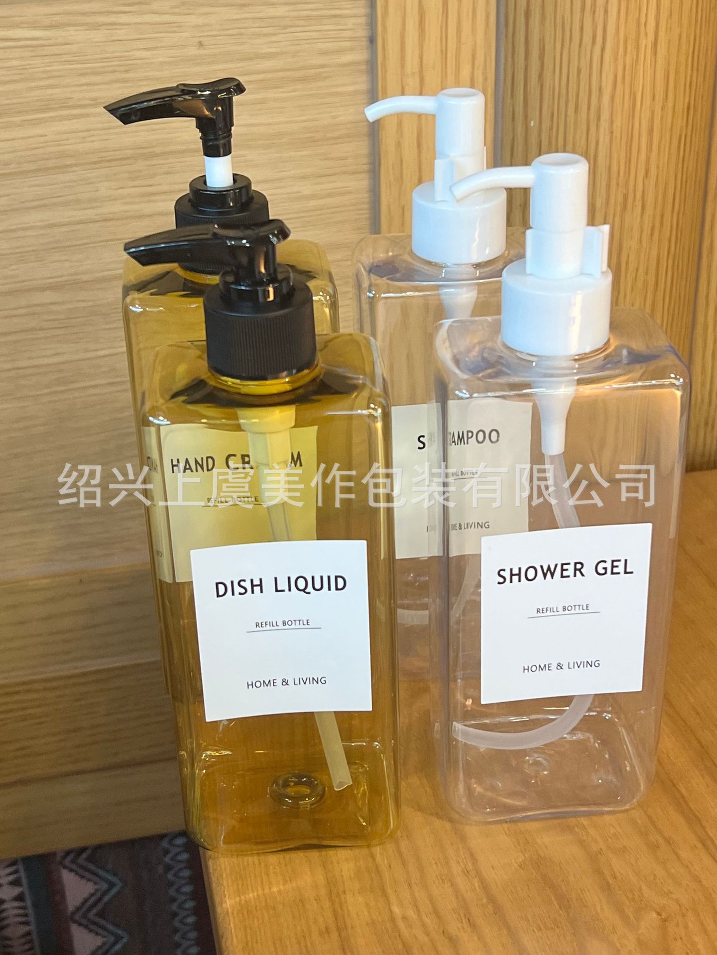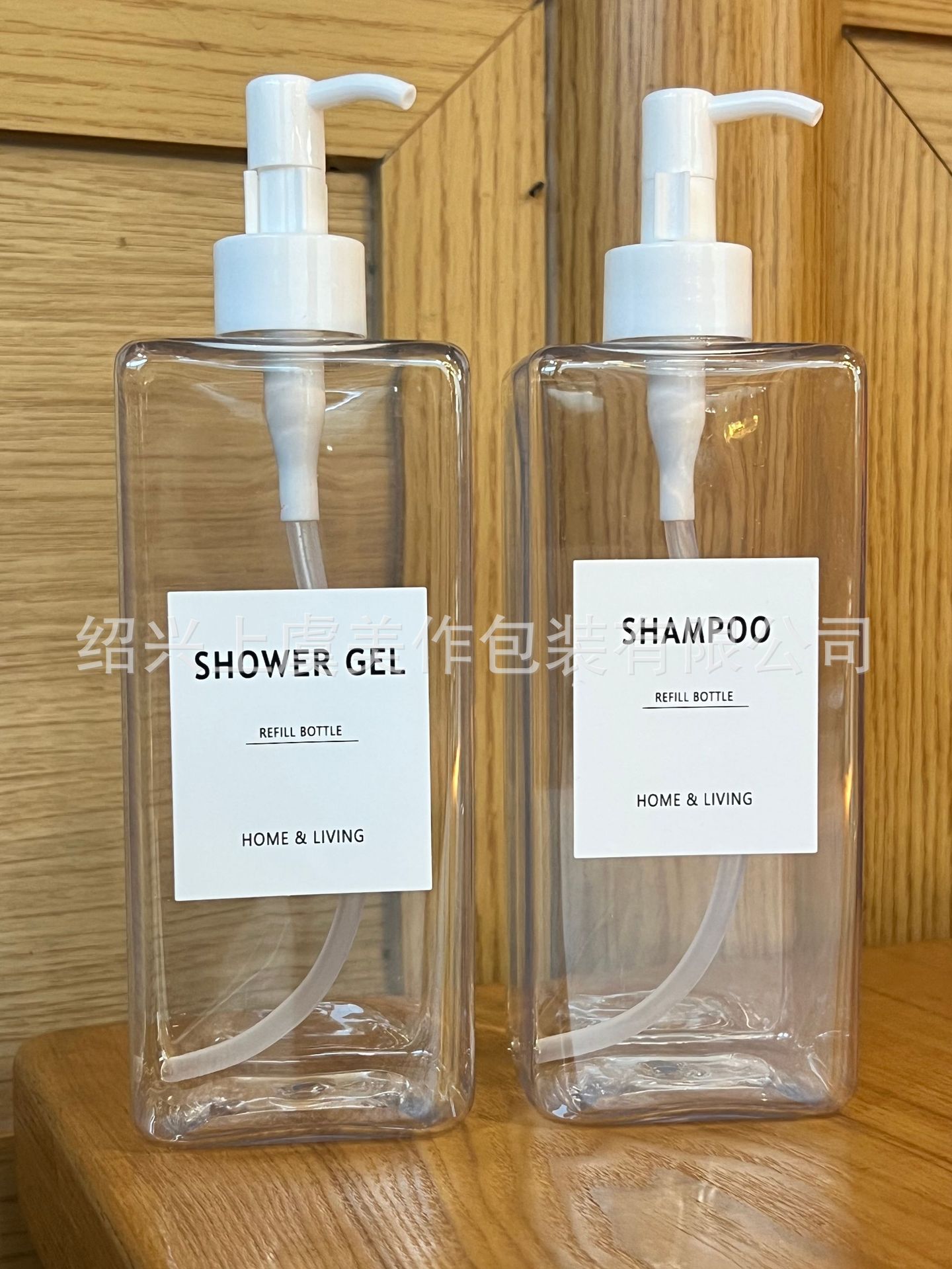 高颜値450mlスクエア分注ボトル大容量ローションシャンプーコンディショナーホテル美容院収纳ボトル