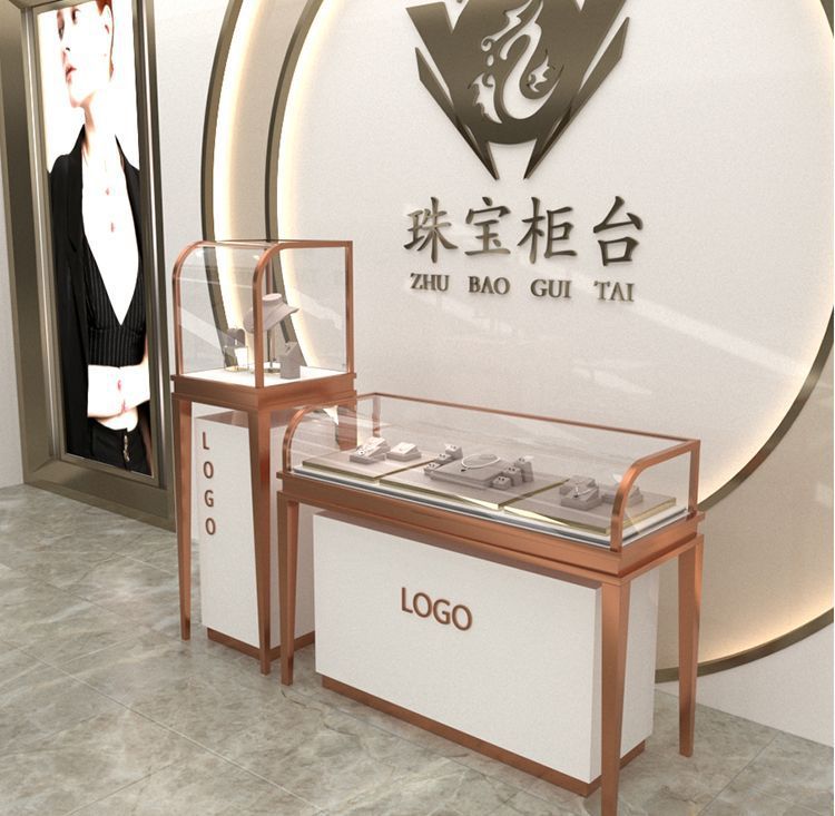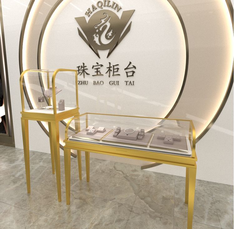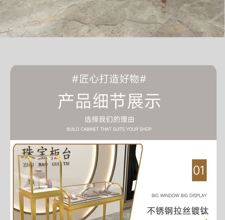 ジュエリーキャビネットディスプレイキャビネットステンレス鋼つや消しチタンメッキイエロー翡翠工芸時計博物館ハイエンド新モデル
