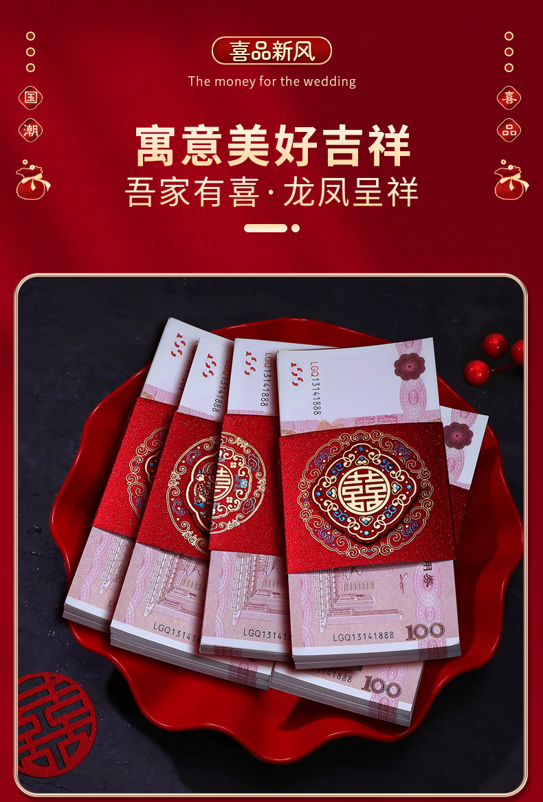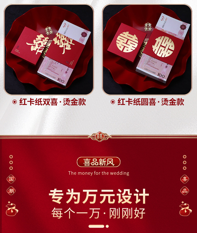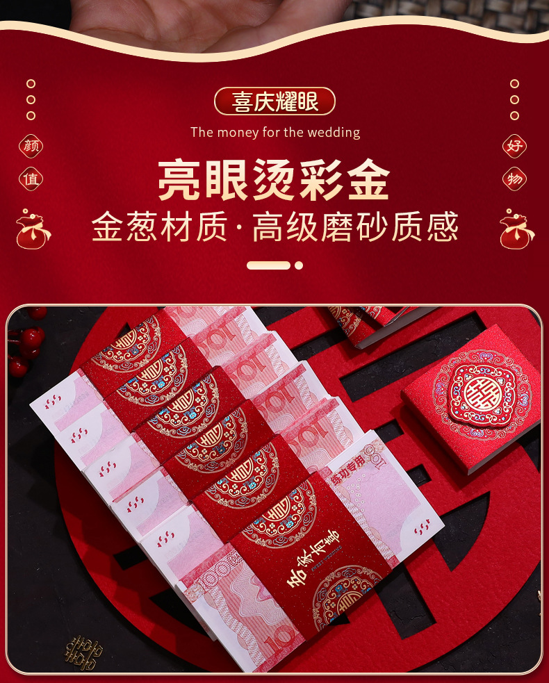 結婚式用1万円カードマネーセット、婚約祝いギフト、お金の束、結婚式の赤い封筒、ギフト封筒、特別なギフト封筒