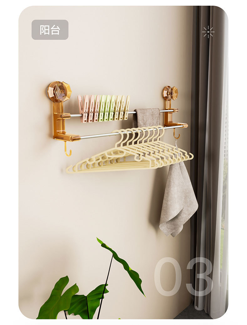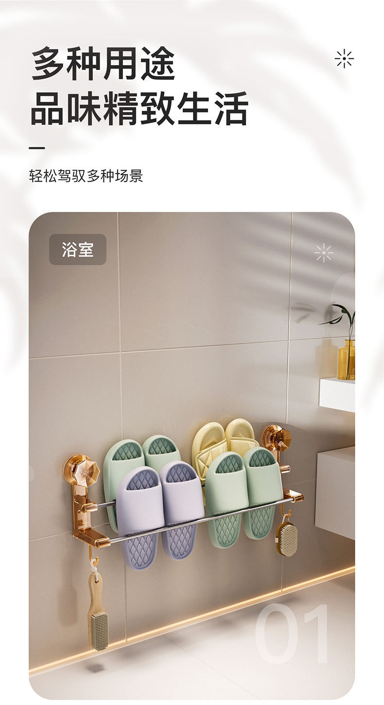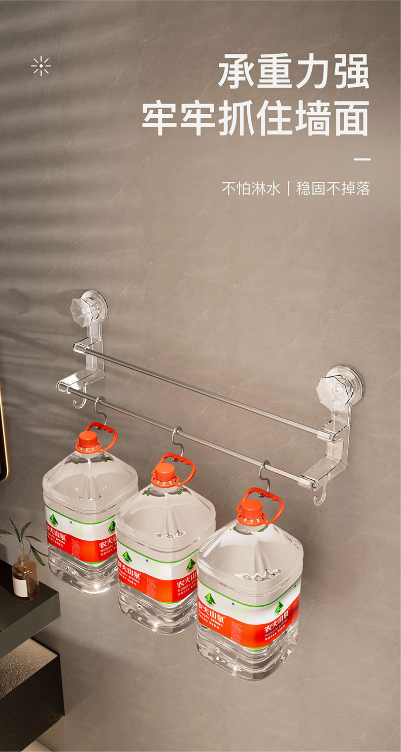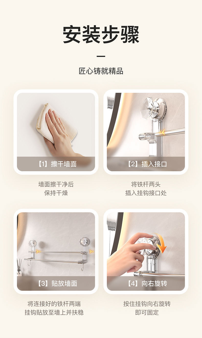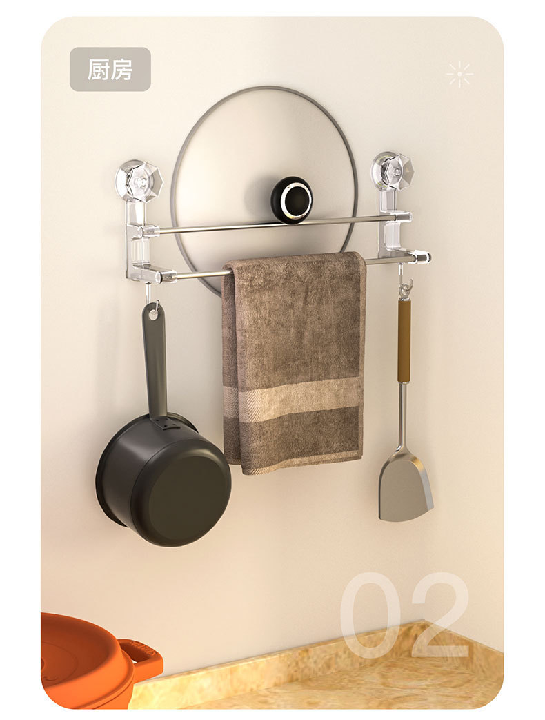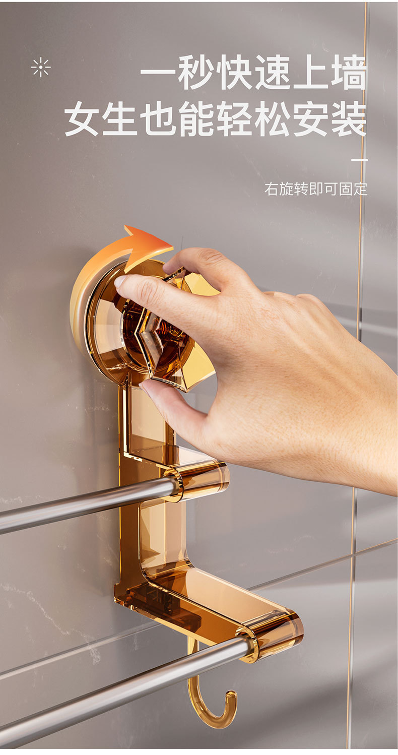 ダブルロッド吸盤タオルラック家庭用バスルーム収納ラックライト高級吊り下げロッドフック付きウェットとドライタオル両用収納ラック