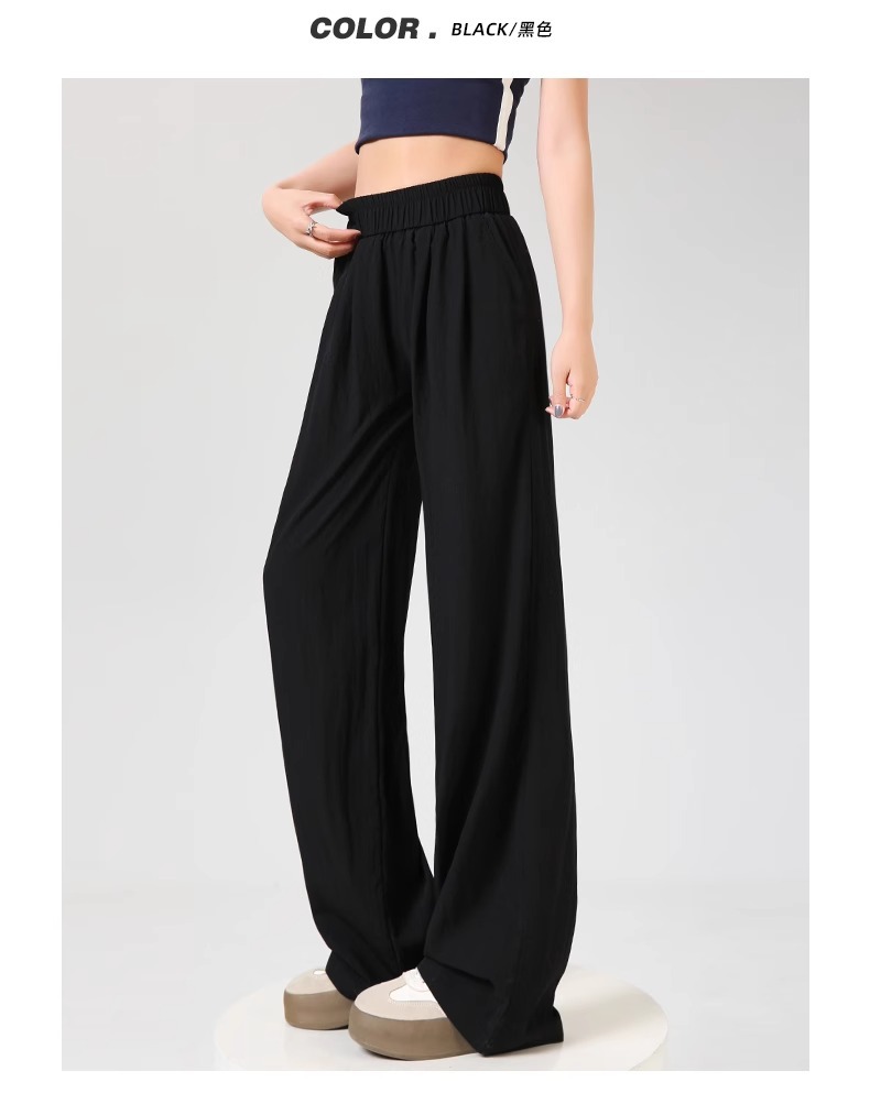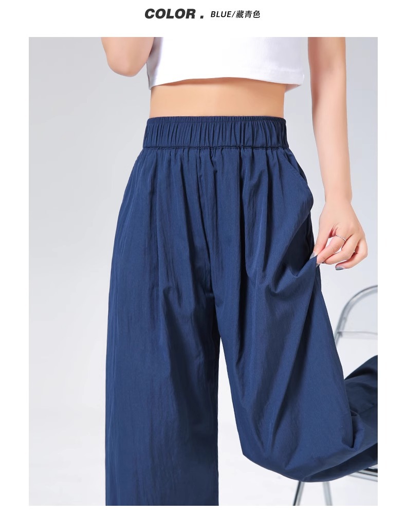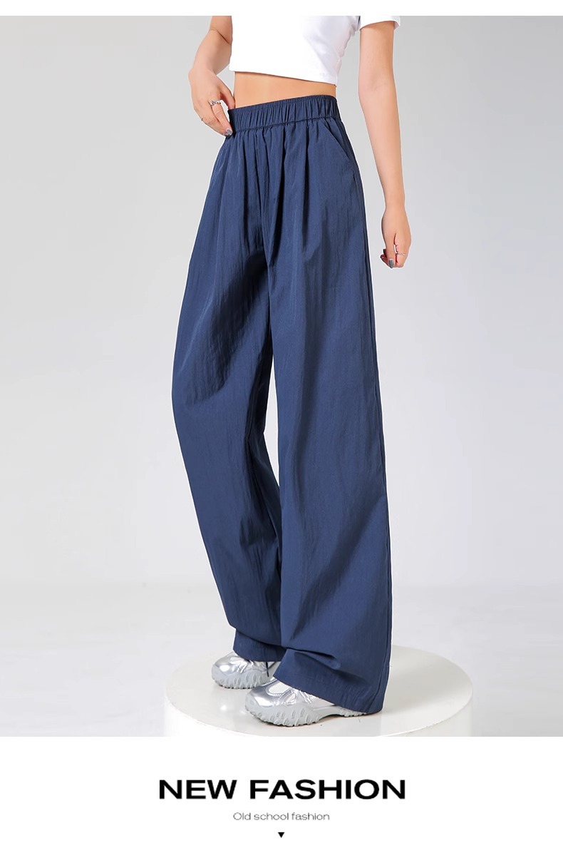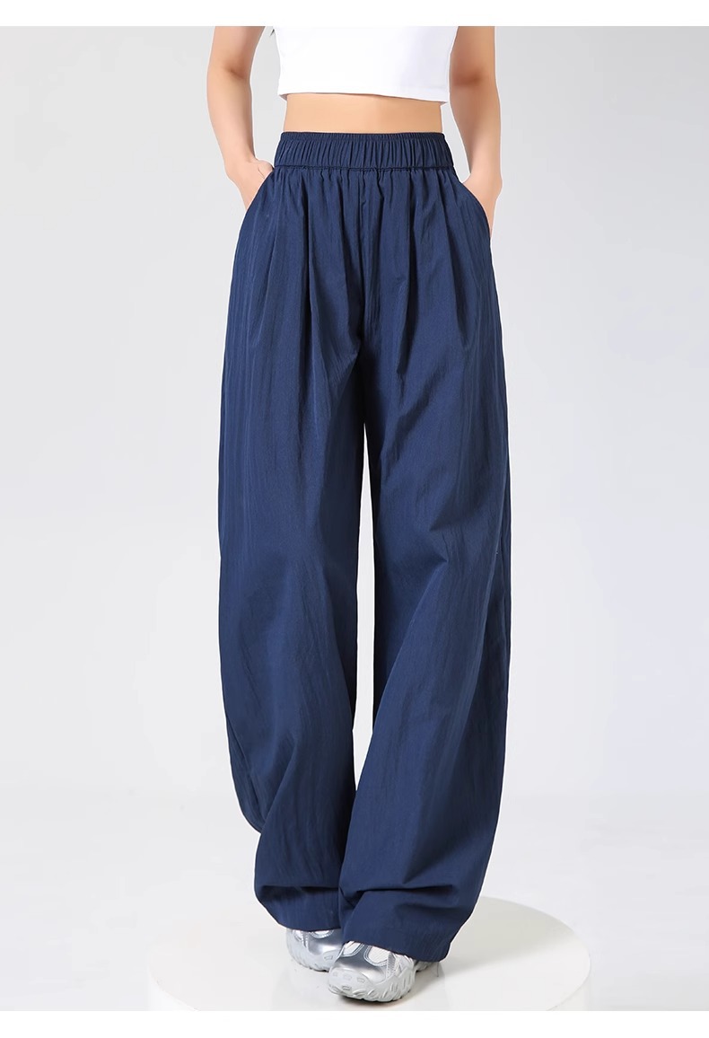 ネイビーブルー山本ワイドレッグパンツレディース夏薄手2025新作ルーズストレートリネンアイスシルククールカジュアルパンツ