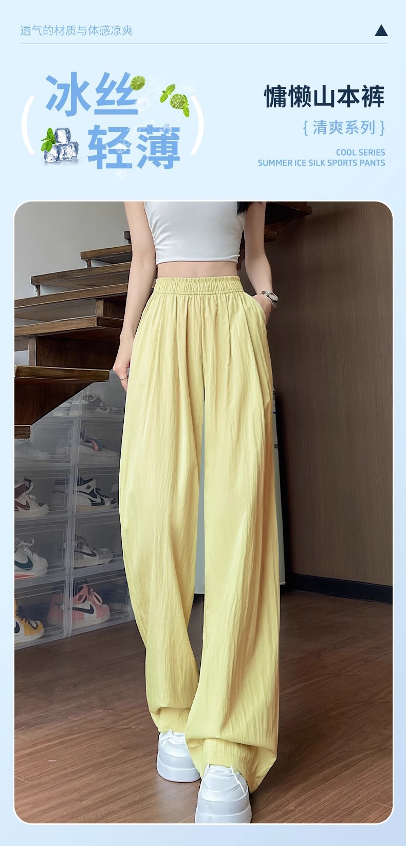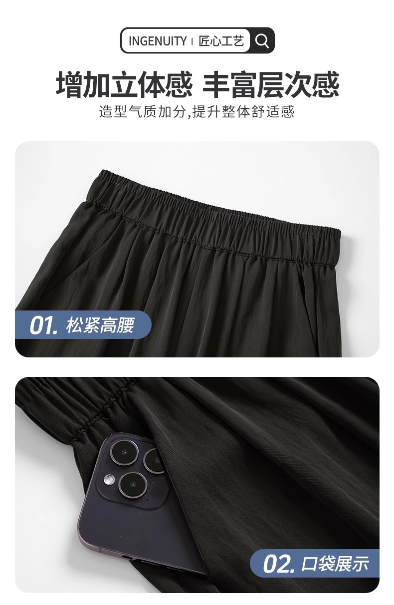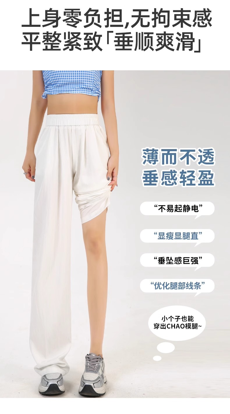 ネイビーブルー山本ワイドレッグパンツレディース夏薄手2025新作ルーズストレートリネンアイスシルククールカジュアルパンツ