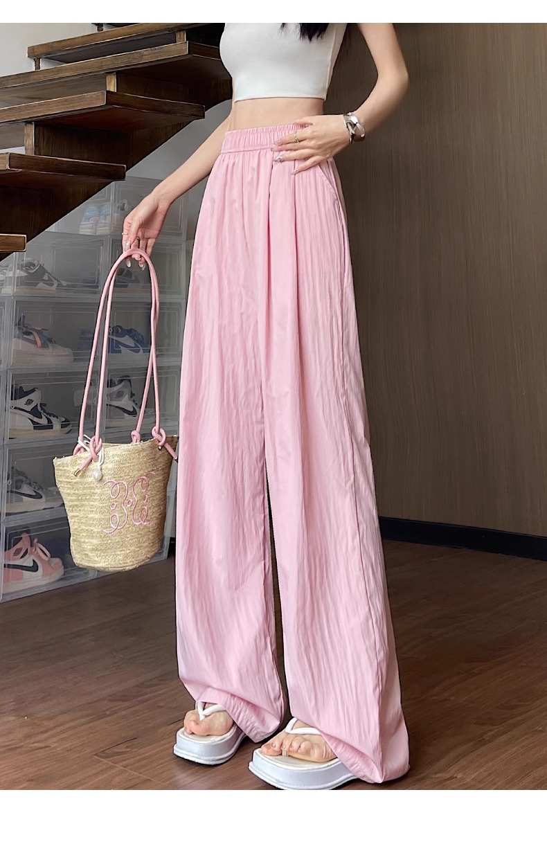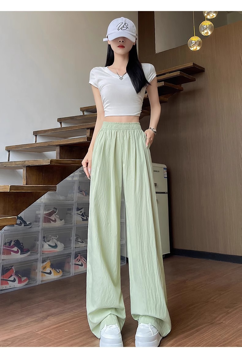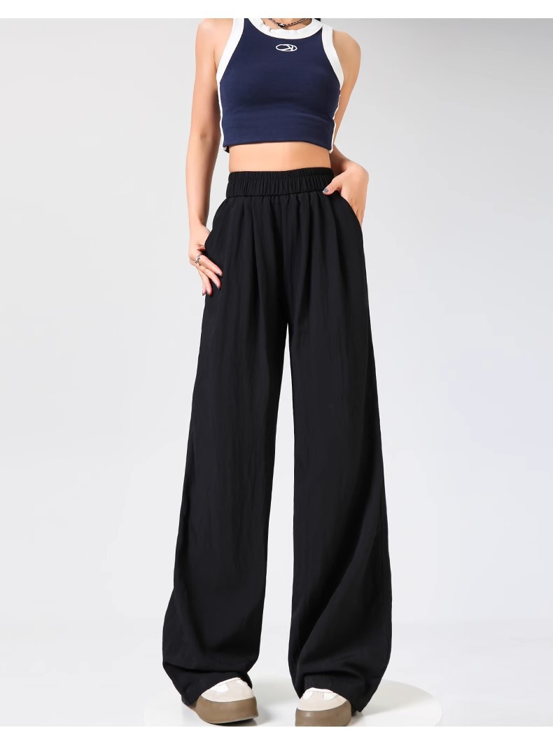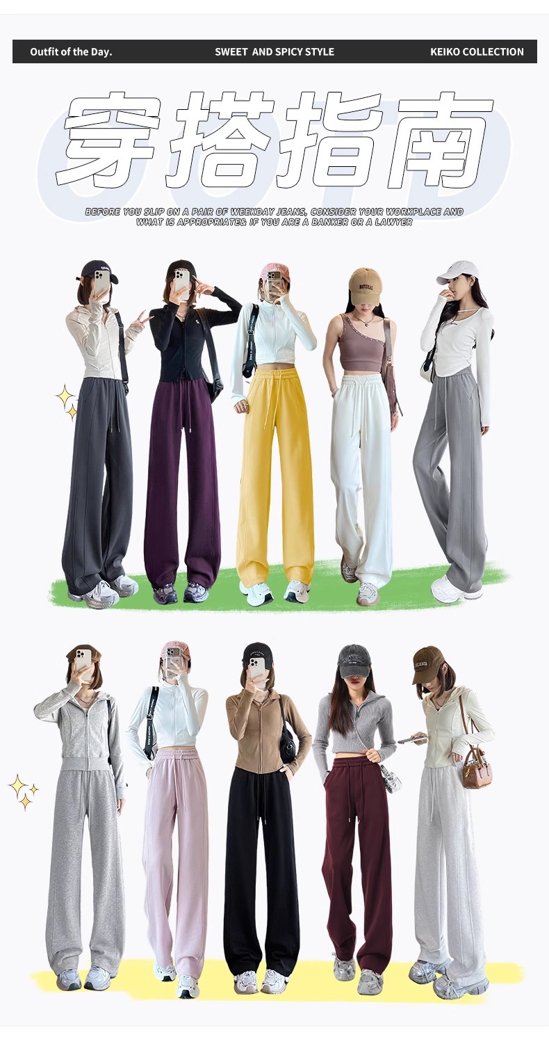 女性用ワイドレッグパンツ 2025 春と秋の新作スポーツストレートカジュアルパンツ小柄な人向け、スリムでドレープのあるバナナパンツ