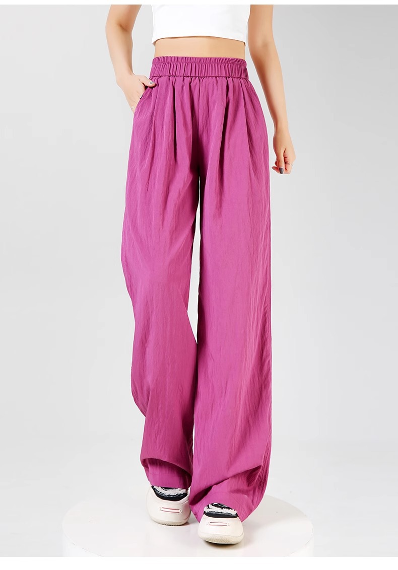 烏梅の紫色の狭い版の広腿のズボンの女性の春秋2025の新型のまっすぐな筒のカジュアルなスポーツのズボンはやせているlulu衛のズボンを現します。