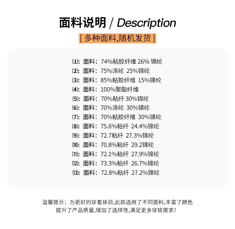 主な生地成分の含有量 70% (含む) ~ 80% (含まない)