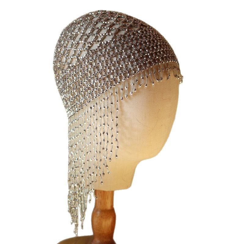 复古欧美跨境手工镂空头饰气质拍摄新娘舞台表演串珠流苏帽子旅拍