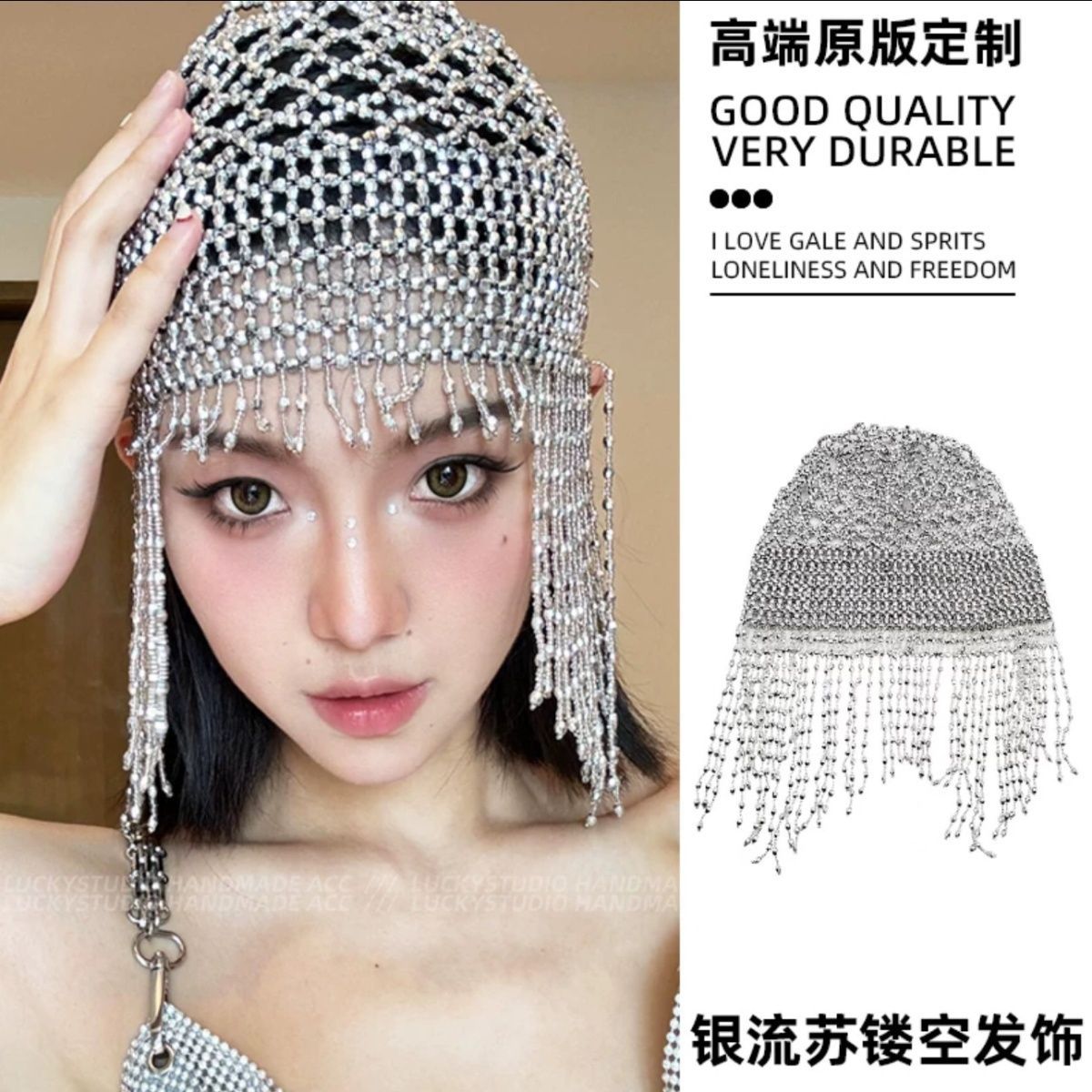 流苏珍珠帽串珠头饰流苏帽子流苏银色帽子头饰影楼拍照写真配饰品