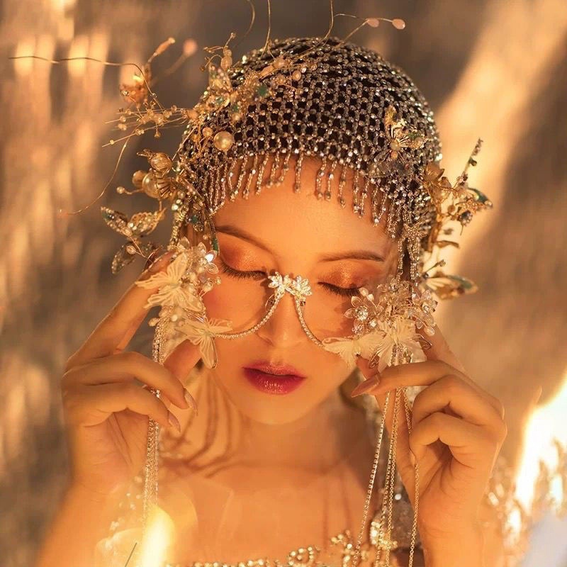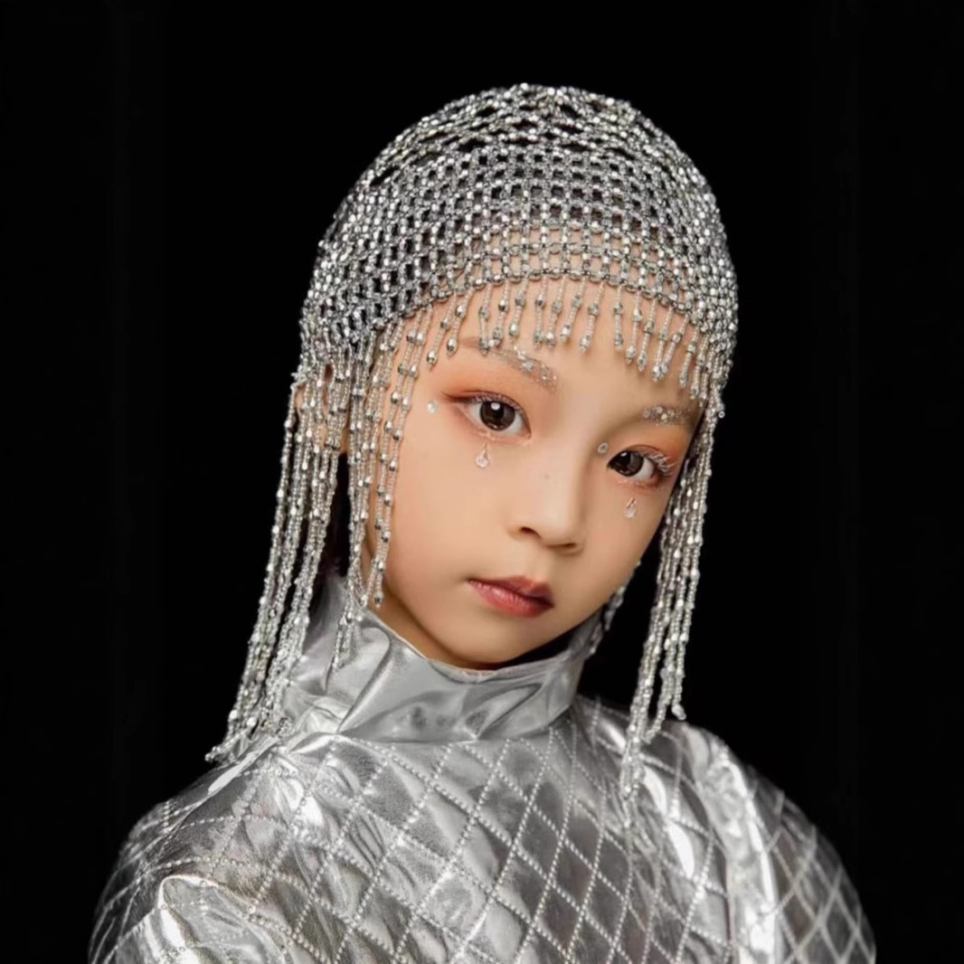 ネットの赤い人気のドリルのフリンジの髪の帽子の超きらめく気質の個性の頭飾りの舞台はショーの花嫁の結婚式を演じて配合します。