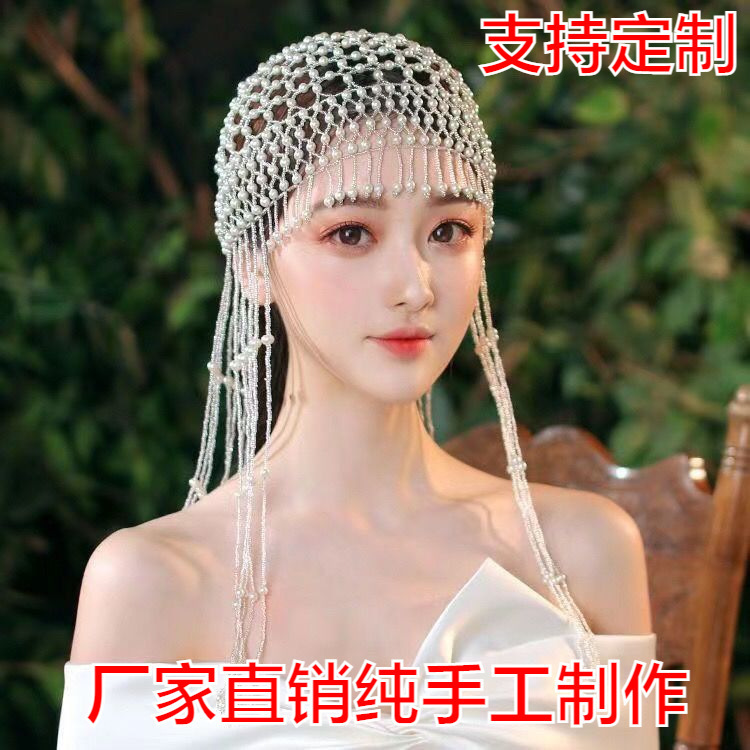 新商品ベリービーズ帽子インドダンス表演出ダンスビーズ帽子新婦頭飾り手作りビーズフリンジ帽子女