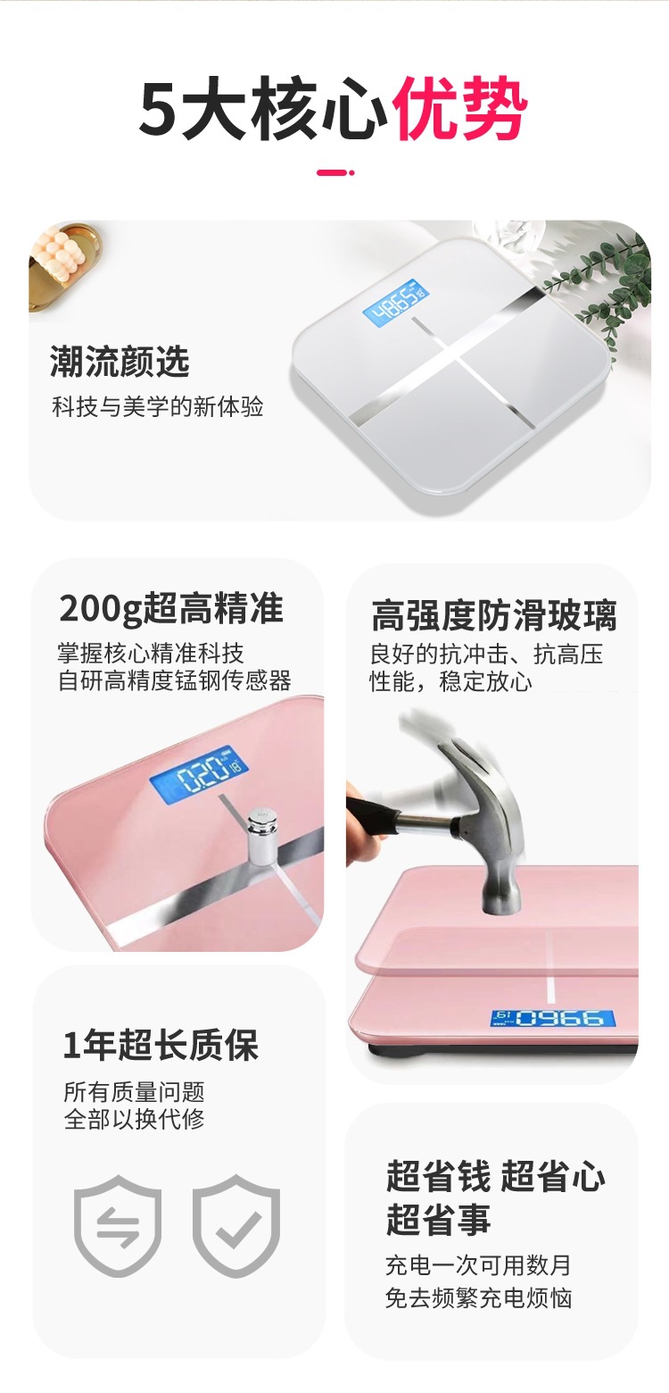高小型電子スケール体脂肪スケール減量ボディスケールスマート寮充電式家庭用