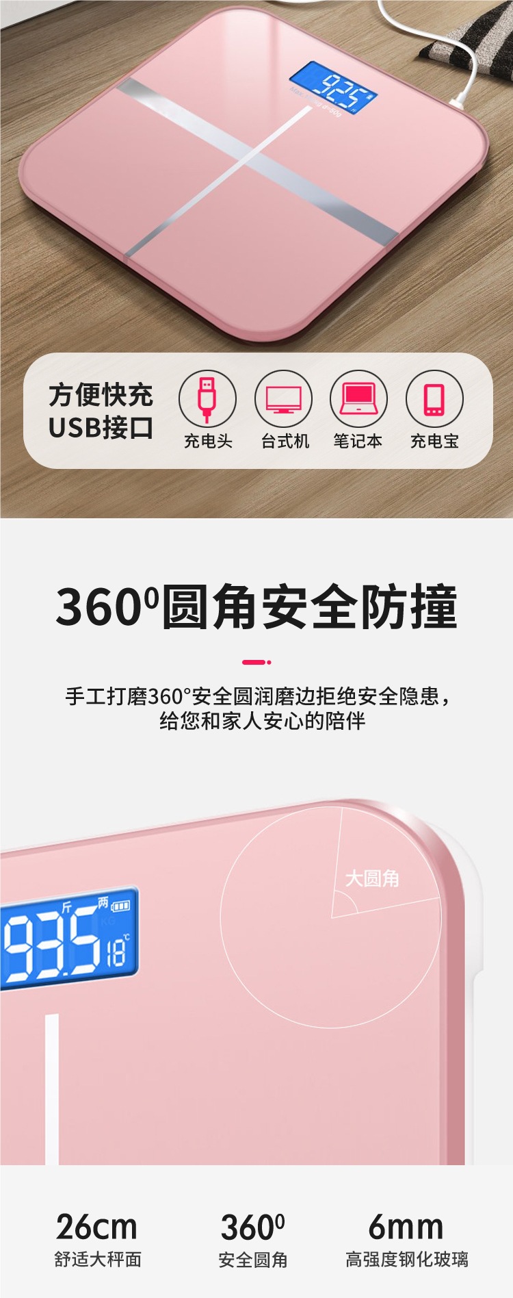 可爱充电女生宿舍电子秤人体称款耐用家用小型体重秤家庭重计