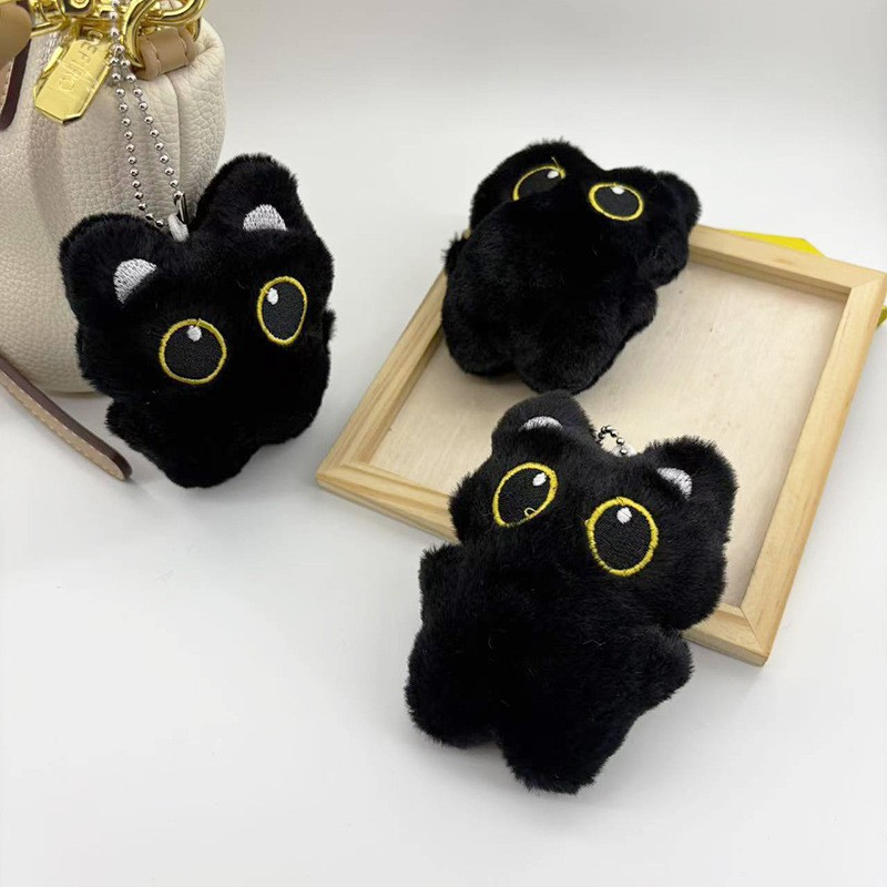 抖音同款热销大眼黑猫吱吱叫饰品挂件毛绒公仔可爱卡通包包挂饰