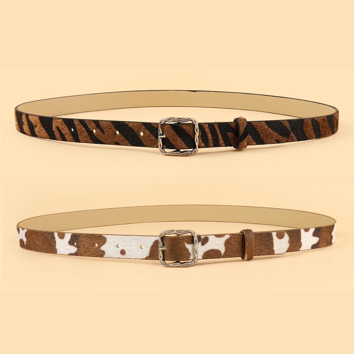 国境を越えて爆発した千年レトロなヒョウ柄の女性ベルトの街頭ファッションのジーンズは馬毛合金のベルトを真似ている
