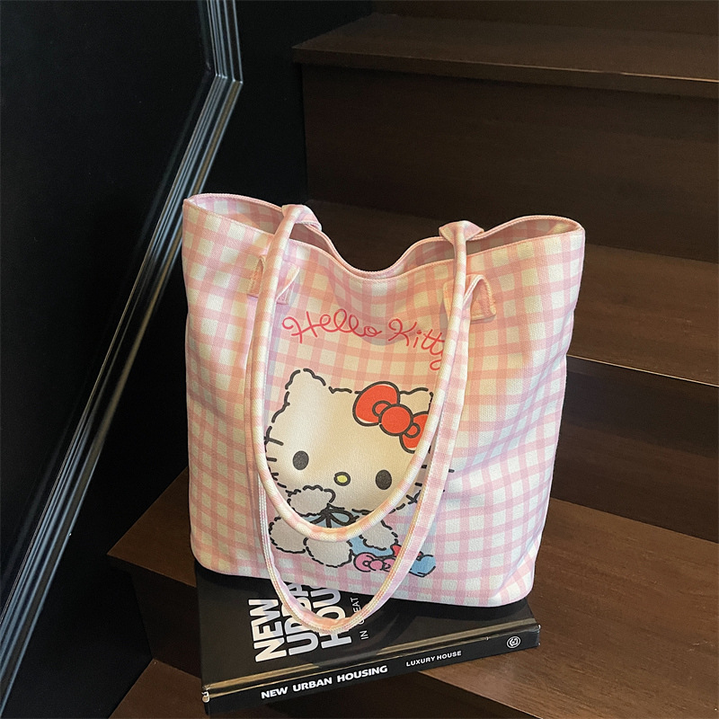 かわいいkitty猫キャンバスバッグ少女手提げ袋片肩夏百合通勤大容量新品トートバッグ