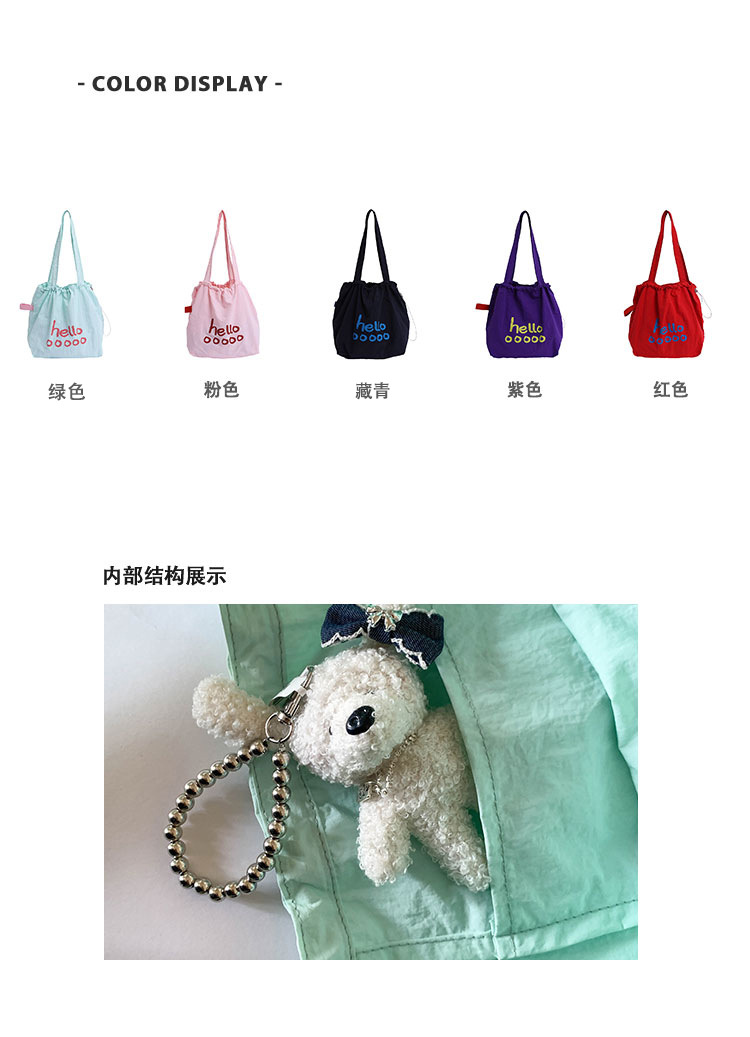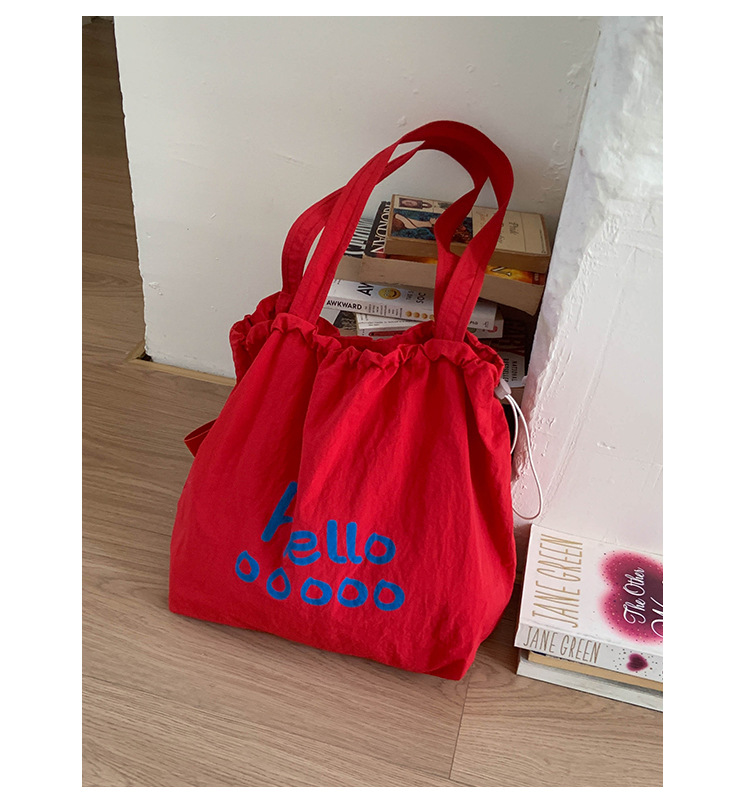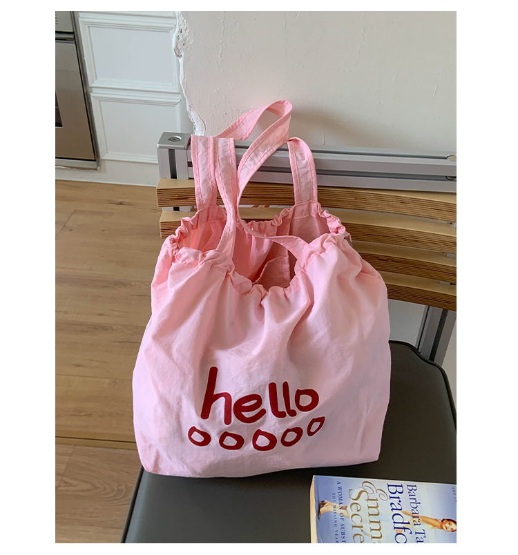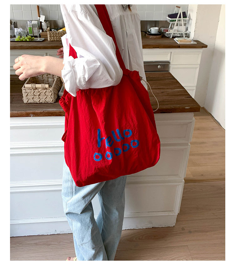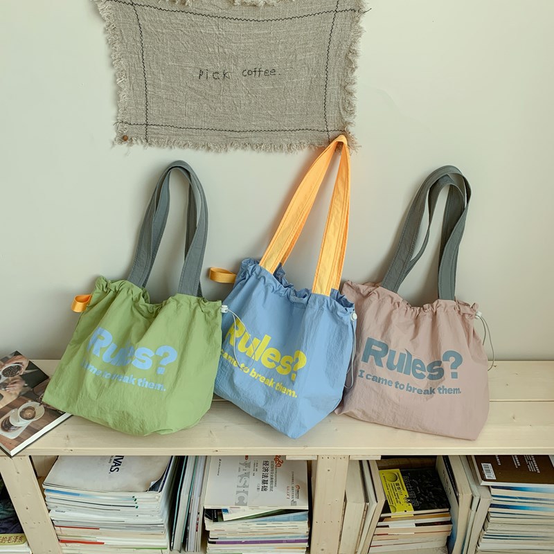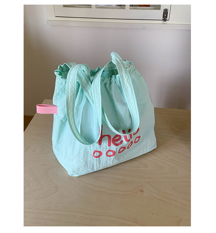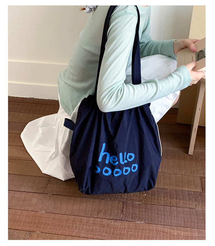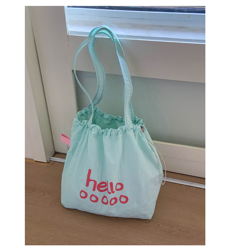 韩版字母尼龙单肩包新款潮搭轻便休闲抽绳背包大容量慵懒风托特包