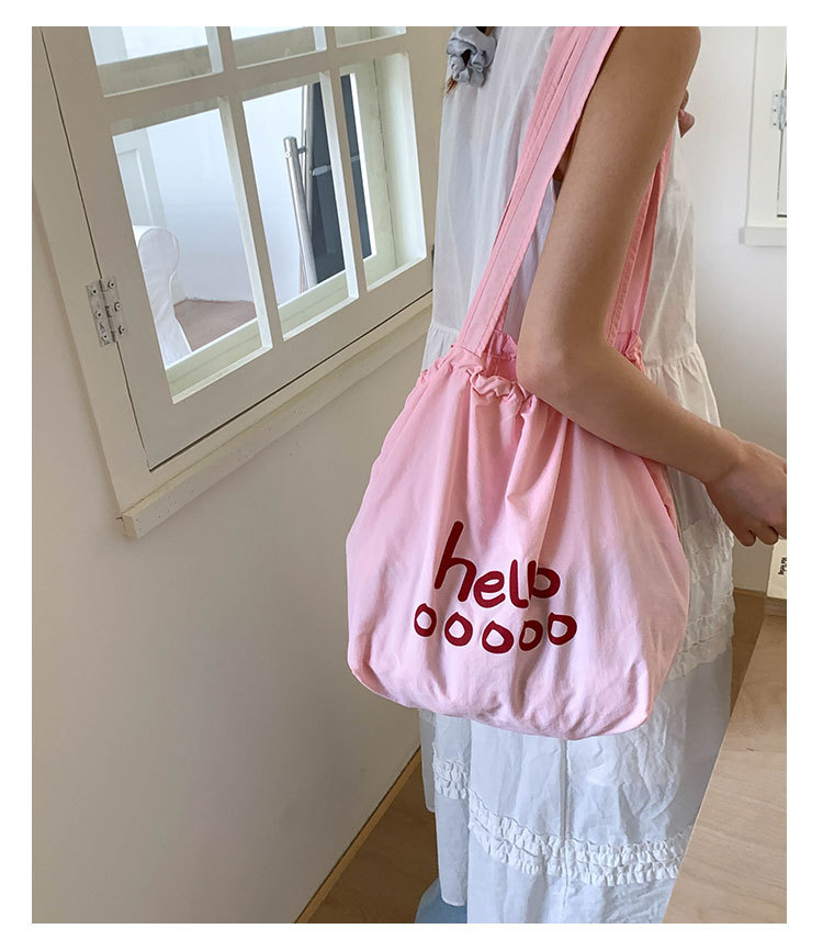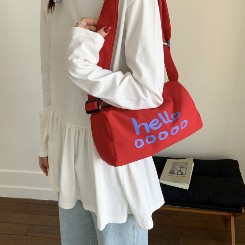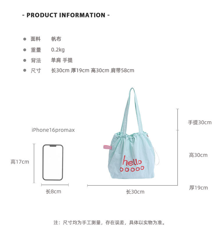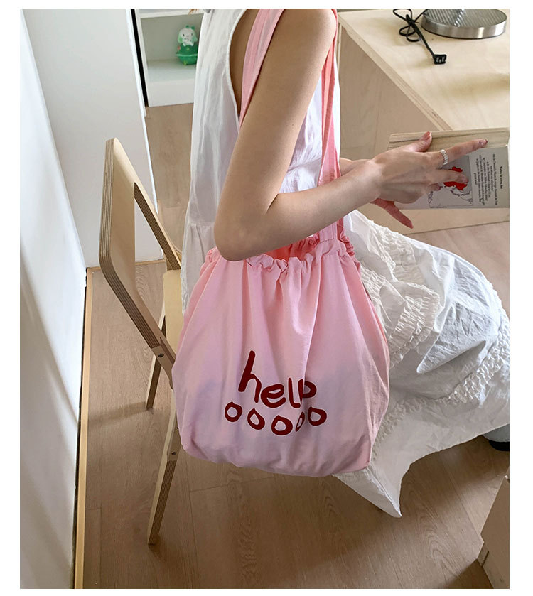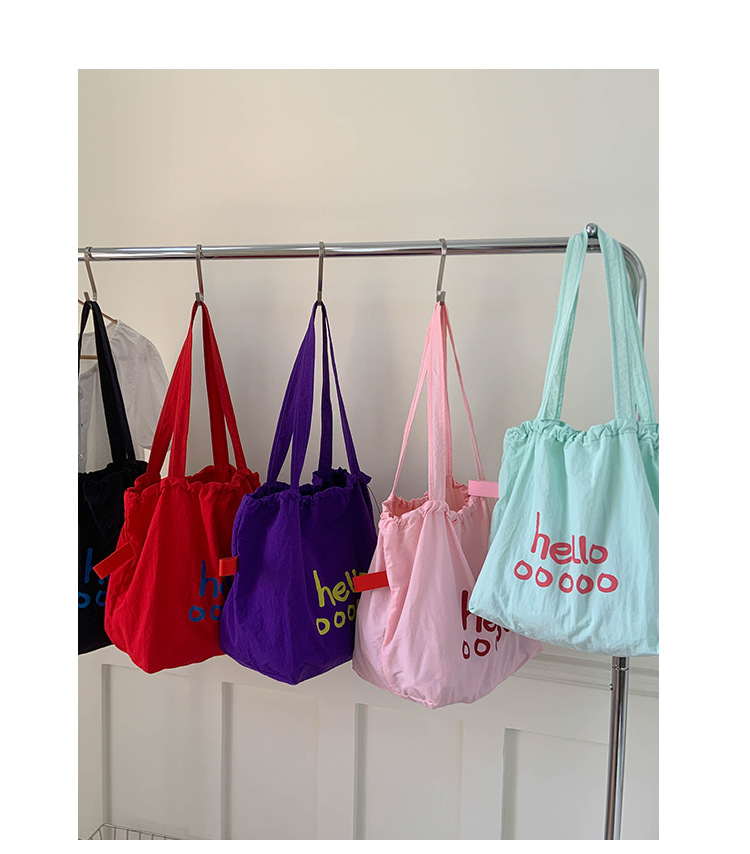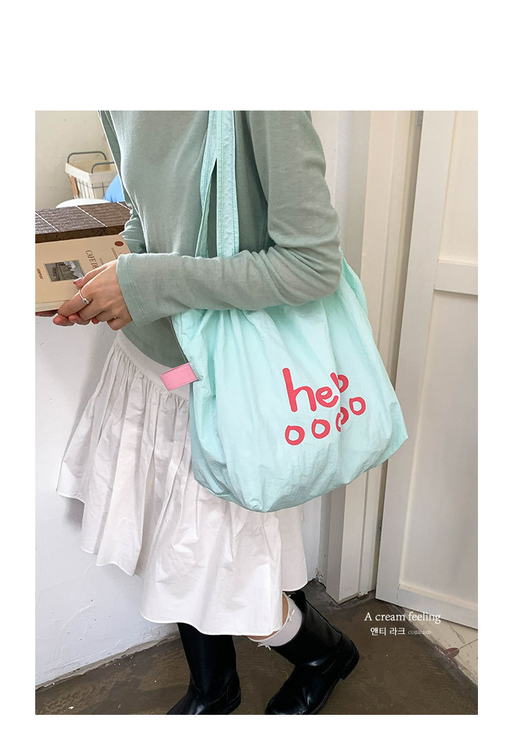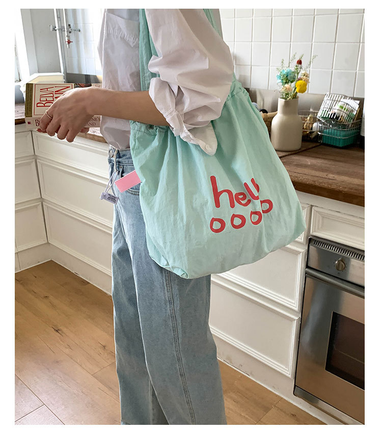 韩版字母尼龙单肩包新款潮搭轻便休闲抽绳背包大容量慵懒风托特包
